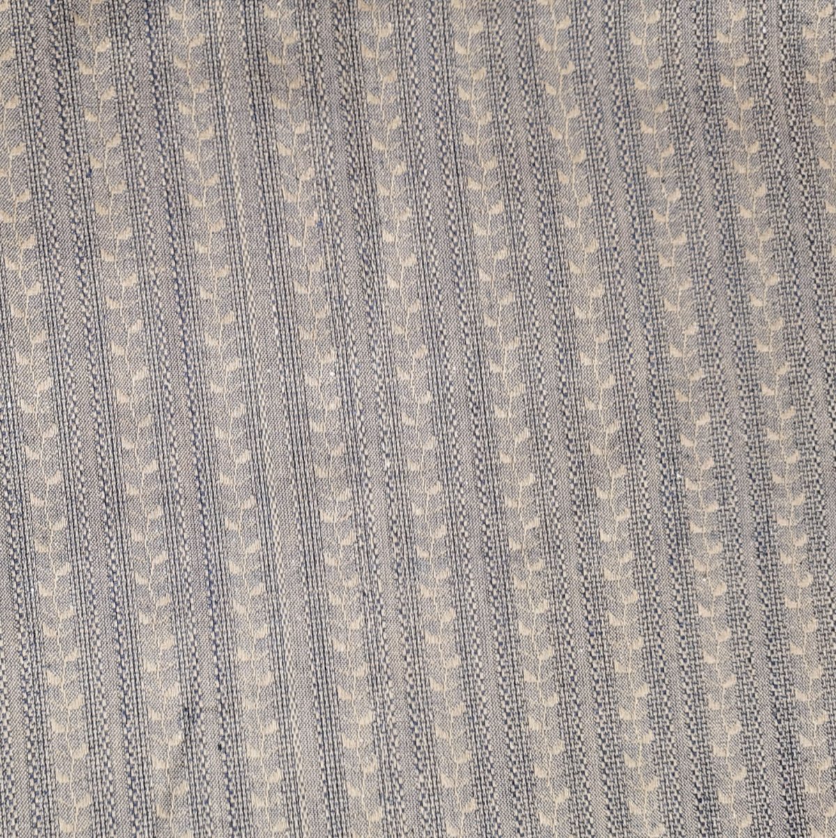 A00040 – Sur un fond gris perle se dessine une alternance de lignes et de motifs tissés, réguliers et fins. Ce tissu offre une lecture rythmée, subtilement texturée.