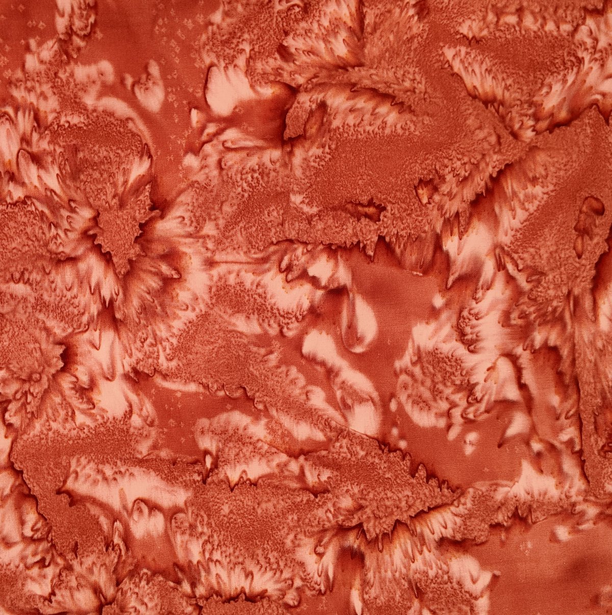 A00054 – Des teintes rouille et sable s’étendent en formes diffuses, semblables à des cristallisations. Le tissu offre une profondeur naturelle et apaisante.
