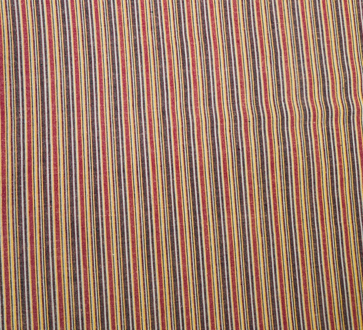 A00262 – Une trame serrée de rayures jaunes, rouges et brunes évoque les marchés d’été et la chaleur des étoffes anciennes.