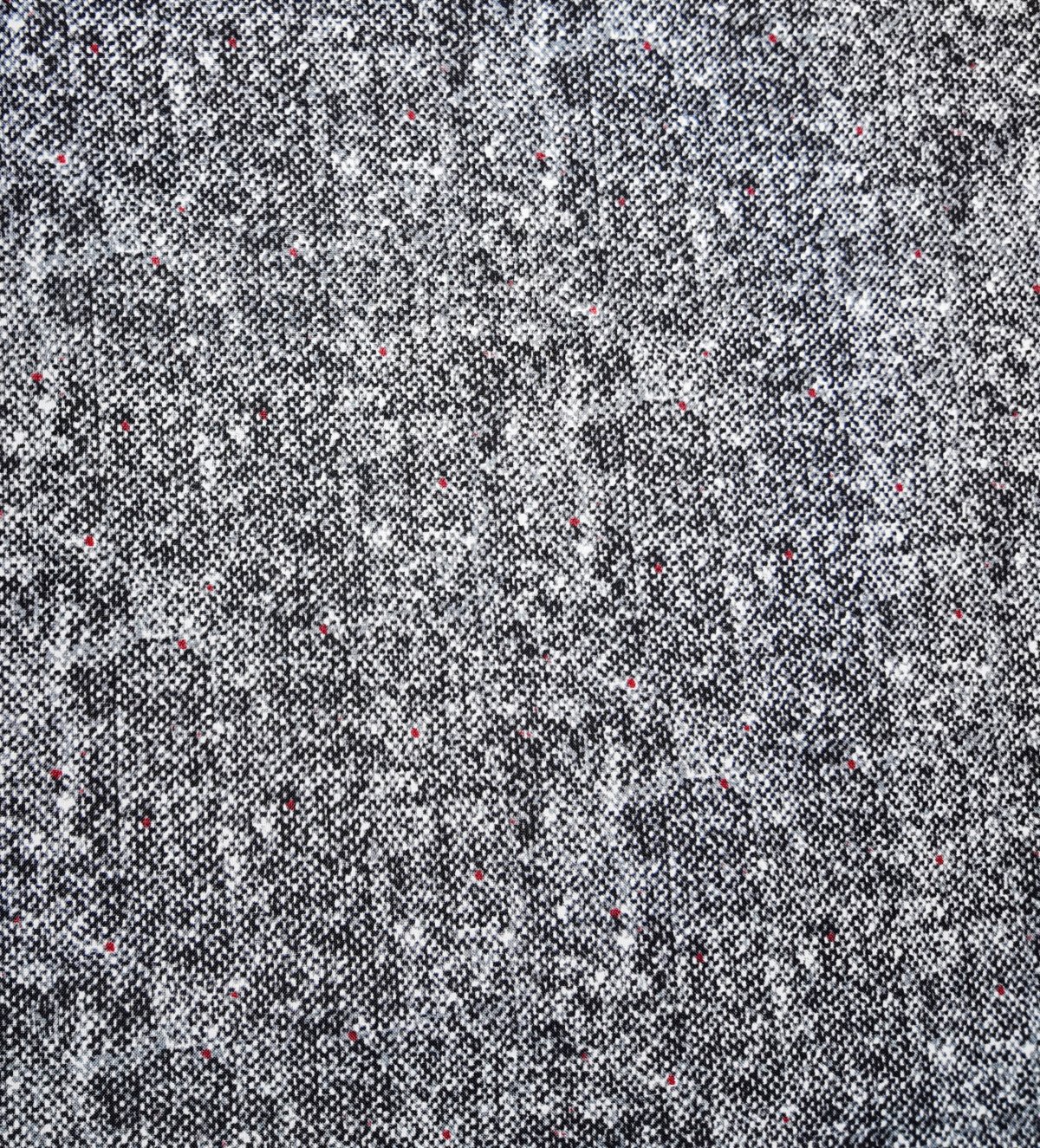 A00264 – Un maillage gris mêlé de points rouges minuscules crée un effet de grain vibrant, dense et raffiné.