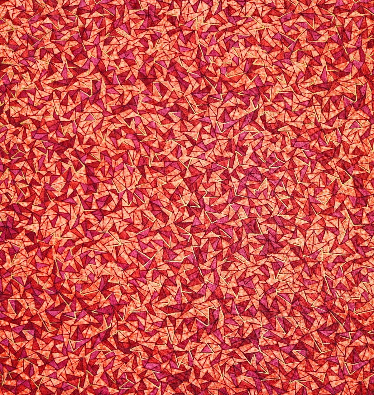 A00288 – Une multitude de fragments rouges et roses s’emboîtent comme des éclats de verre, créant un relief dynamique.