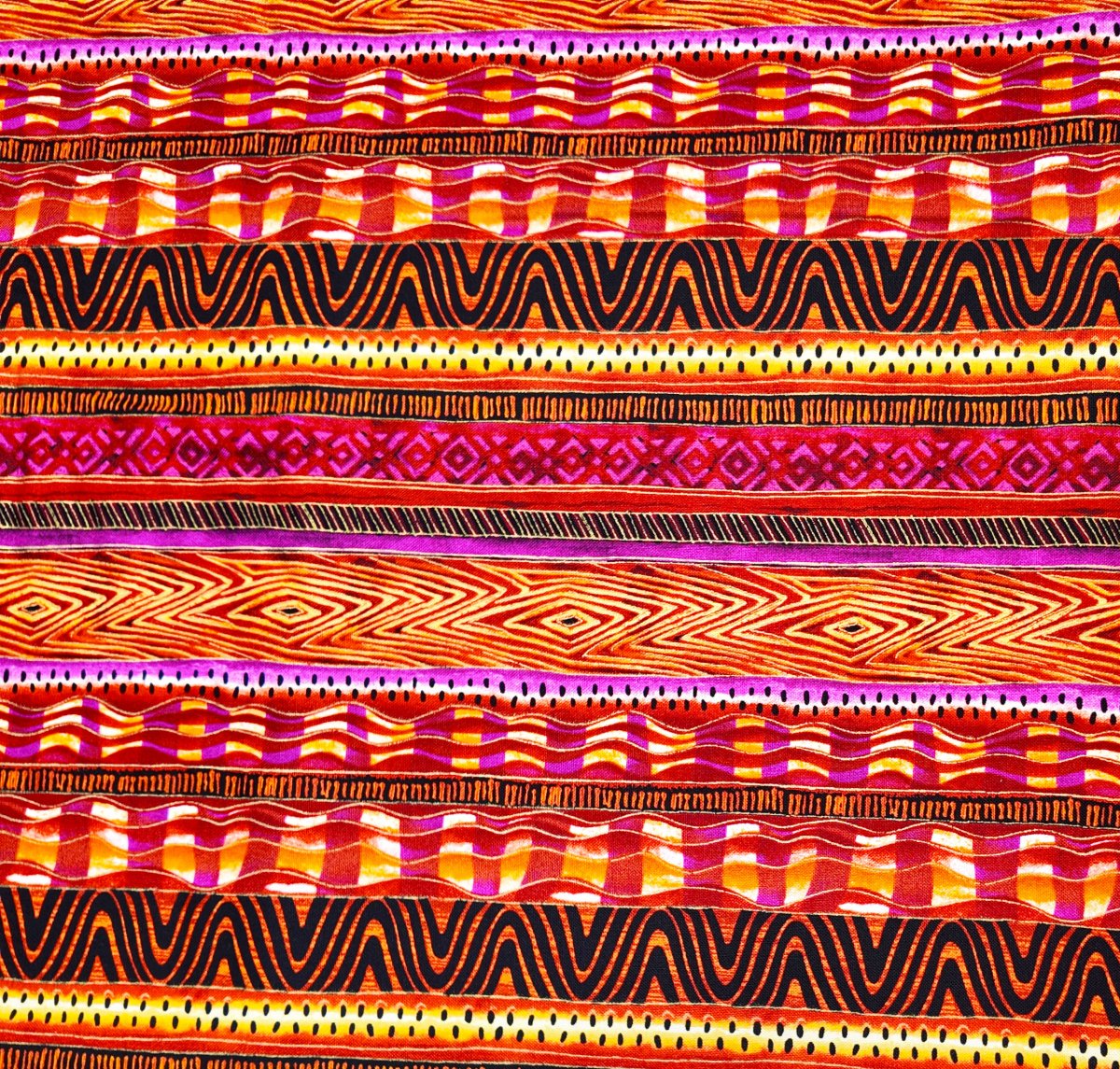 A00292 – Des bandes ardentes d’orange, rouge et noir alternent en motifs tribaux, créant une vibration éclatante.