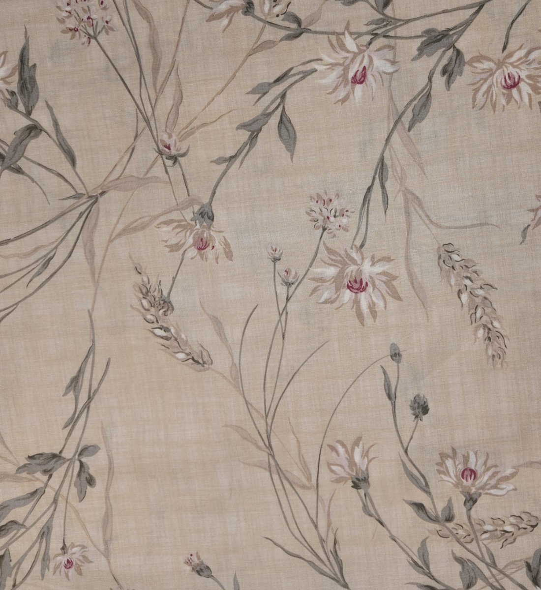 A00341 – Des bouquets poudrés s’épanouissent sur une toile beige, comme des souvenirs d’un jardin d’automne. Les roses fanées, les feuillages grisés et les tiges effilées composent une mélodie douce et feutrée. Ce tissu murmure l’élégance d’un temps suspendu, entre nostalgie et tendresse.