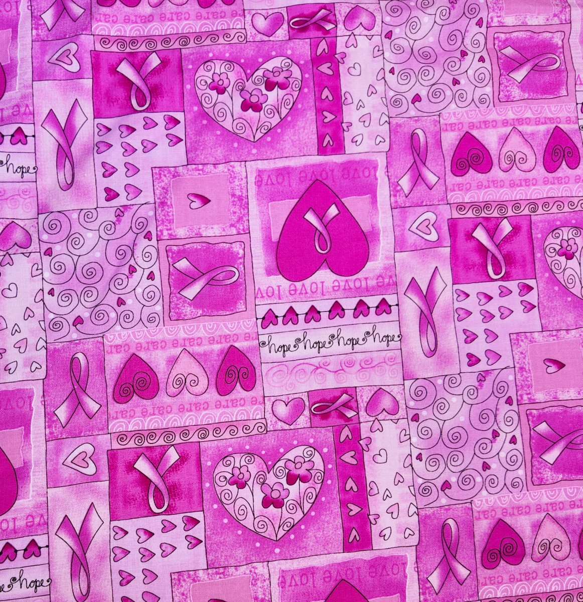 A00363 – Patchwork rose composé de rubans, de cœurs et de spirales stylisées, évoquant la solidarité et la douceur. L’ensemble mêle tons mauves et fuchsia dans une composition tendre et expressive. Motif moyen et structuré.