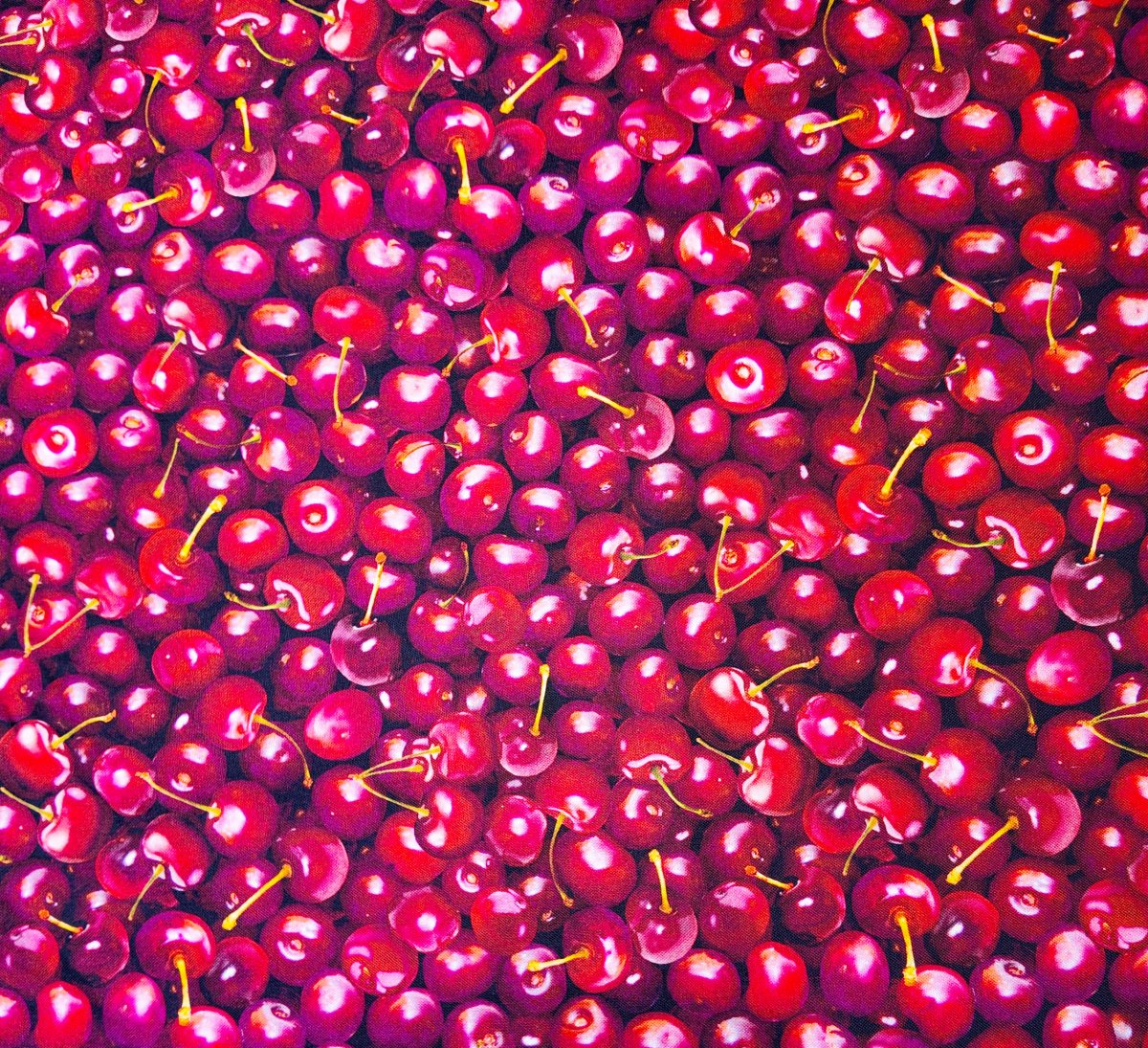 A00402 – Une pluie de cerises écarlates illumine l’étoffe, leurs reflets profonds capturant la lumière comme de petites perles sucrées. Ce tissu évoque la gourmandise, l’été et la promesse d’un fruit cueilli à maturité.