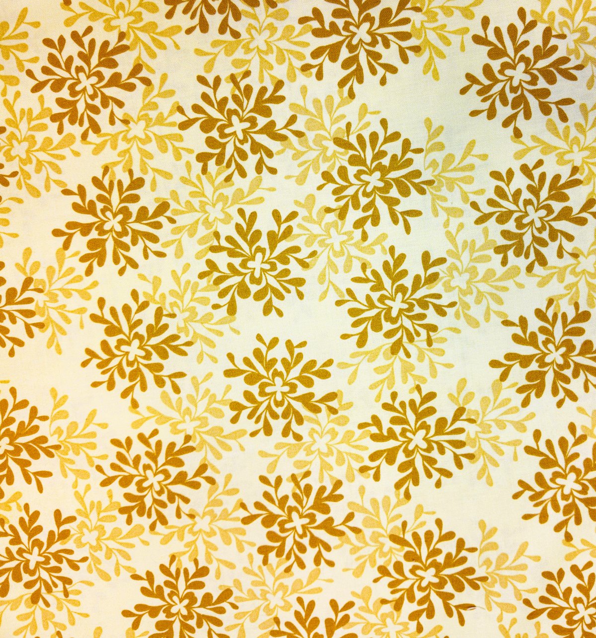 A00481 – Sur fond ivoire, des fleurs dorées s’épanouissent avec légèreté, rappelant la chaleur d’un soleil matinal. Le tissu rayonne d’une élégance douce et apaisante.