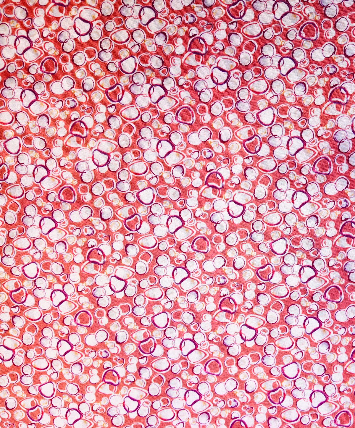 A00492 – Bulles et cercles roses et violets se mêlent sur un fond rosé, dans une danse lumineuse et joyeuse. Le tissu évoque la fraîcheur d’une limonade estivale.