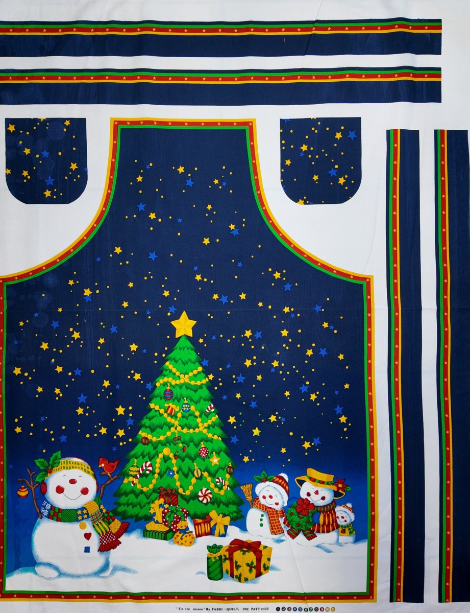 DECOU-008 – Grand sapin de Noël illuminé sous un ciel bleu nuit constellé d’étoiles, entouré de joyeux bonhommes de neige et de paquets colorés. L’ensemble forme une scène enchantée évoquant la féerie et la magie de l’hiver.
