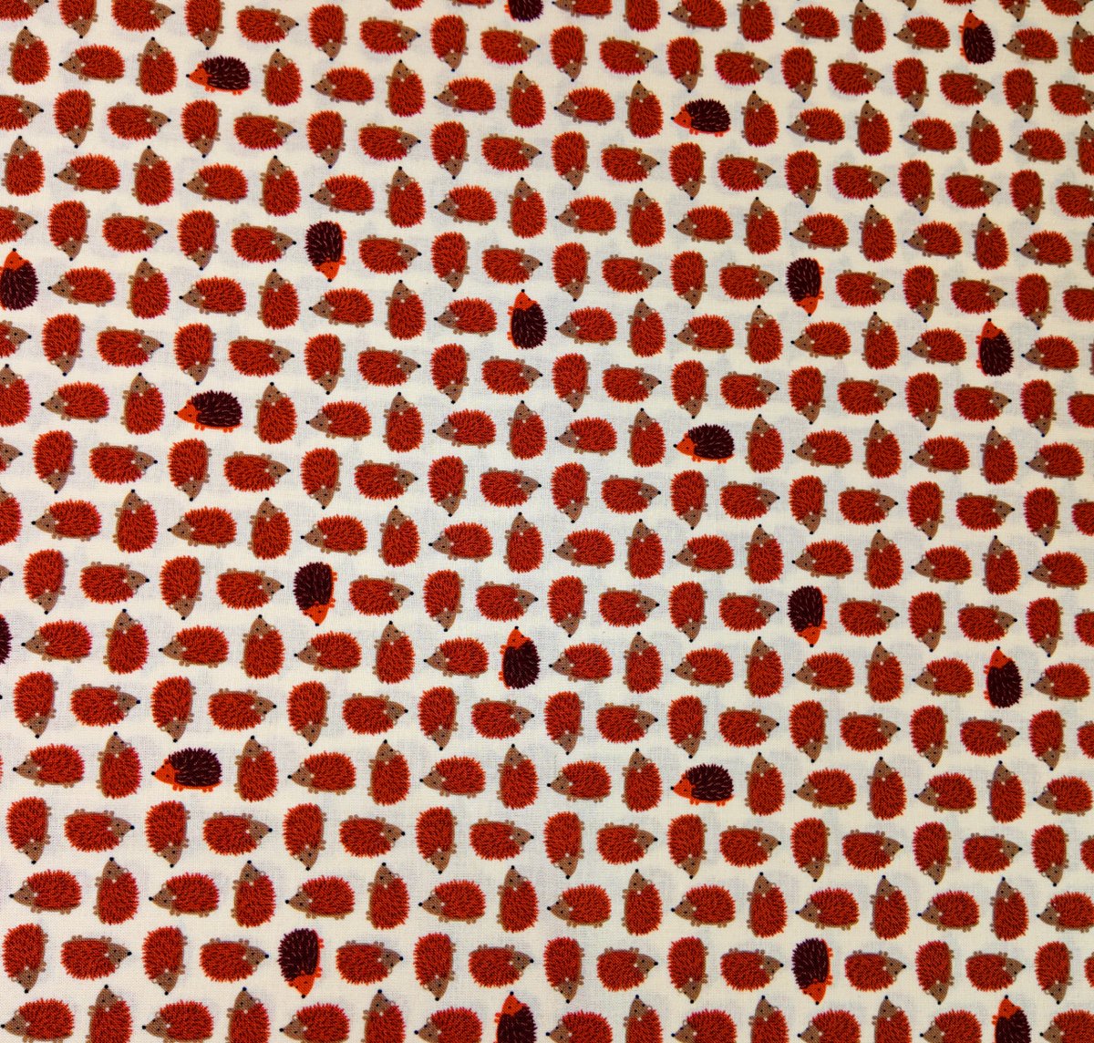 IMPRI-021 – Une multitude de petits hérissons aux tons roux et bruns se détachent sur un fond clair, apportant une touche ludique et forestière.