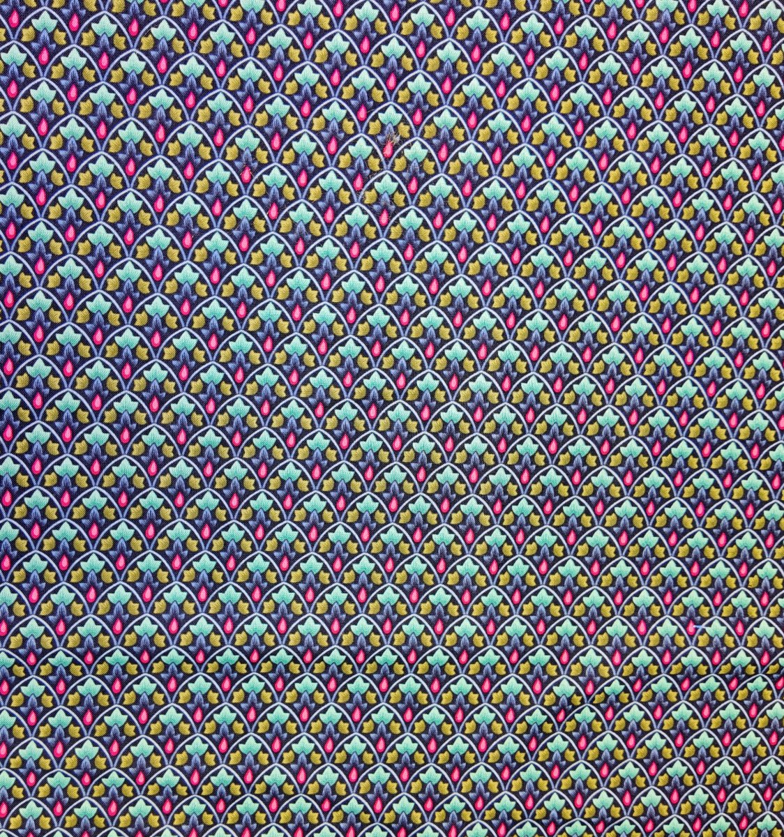 IMPRI-103 – Un jeu d’arabesques géométriques se déploie en vagues harmonieuses de turquoise, vert et bleu nuit, ponctuées de touches carmin. Un univers hypnotique aux reflets d’éventail art déco.