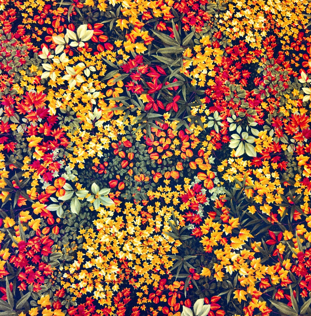 IMPRI-117 – Un jardin dense et foisonnant se déploie en un camaïeu d’or, de rouge et d’ambre. Chaque fleur semble éclore sous le soleil d’automne, dans une profusion joyeuse.