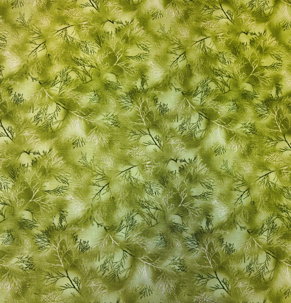 IMPRI-124 – Des branches fines et vaporeuses se dessinent sur un fond vert tendre, comme un souffle de vent dans un sous-bois paisible. Une impression légère et harmonieuse.