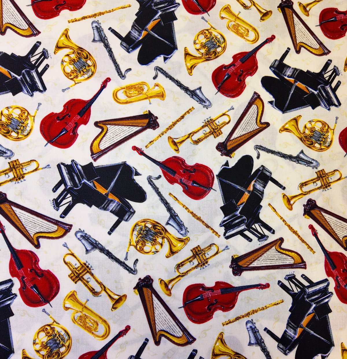 IMPRI-134 – Un concert de couleurs anime ce tissu où pianos, harpes, trompettes et violoncelles se côtoient avec éclat. La scène vibre d’énergie et de passion musicale.