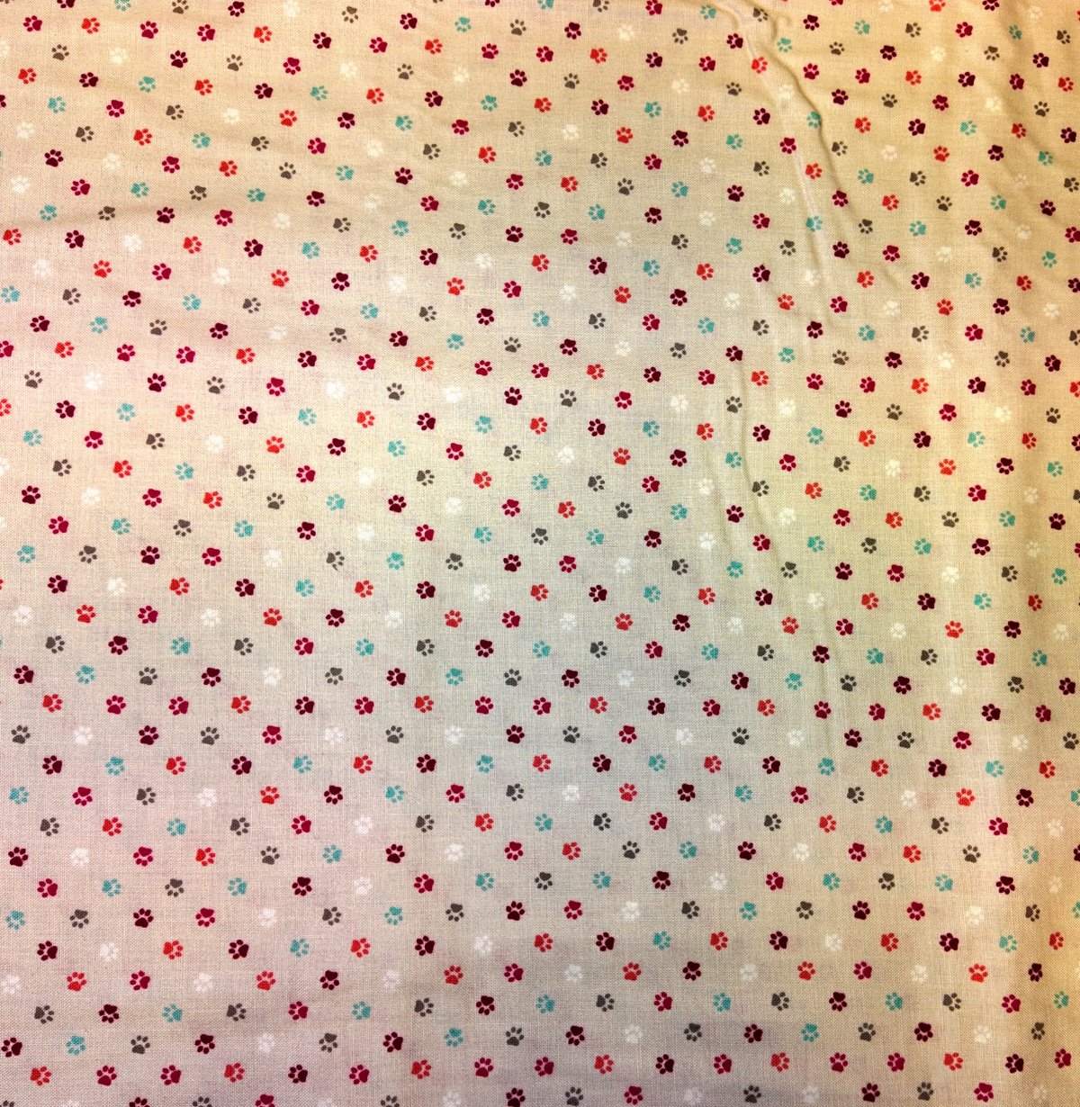 IMPRI-178 – De délicates pattes colorées parsèment un fond beige chaleureux. Les nuances pastel ajoutent une touche tendre et conviviale.