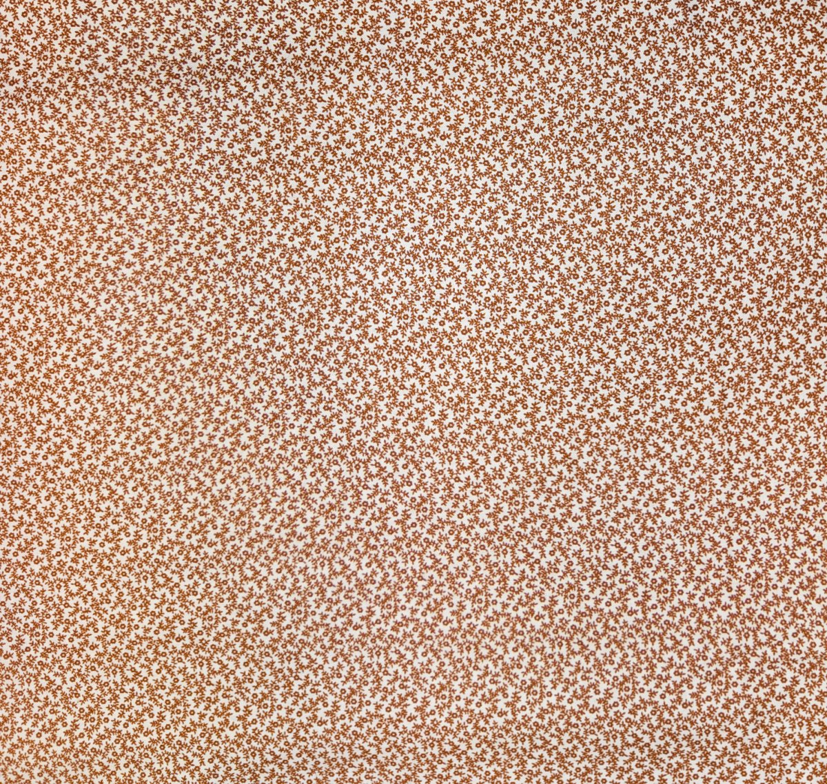 LIBER008 – Un semis régulier de petites fleurs brunes se détache sur fond ivoire. L’ensemble respire la chaleur de la terre et la simplicité des textiles naturels.