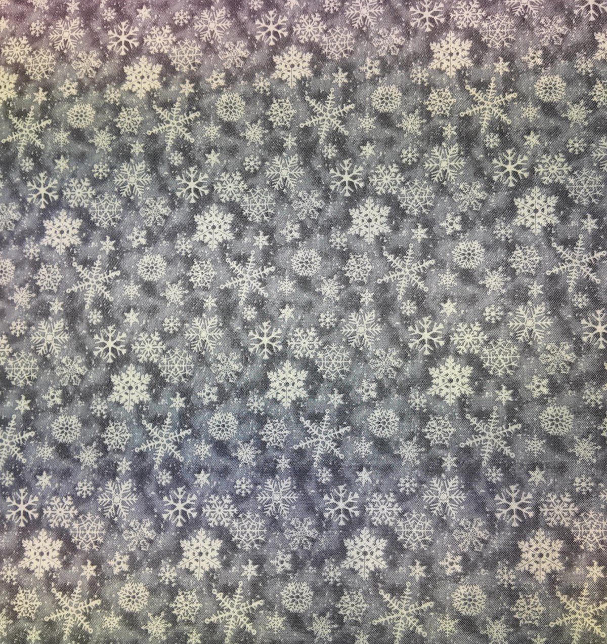 NOEL-048 – Un fond gris bleuté parsemé de flocons clairs évoque un ciel d’hiver poudré. Chaque flocon semble suspendu dans l’air, capturant un instant de pureté glacée.
