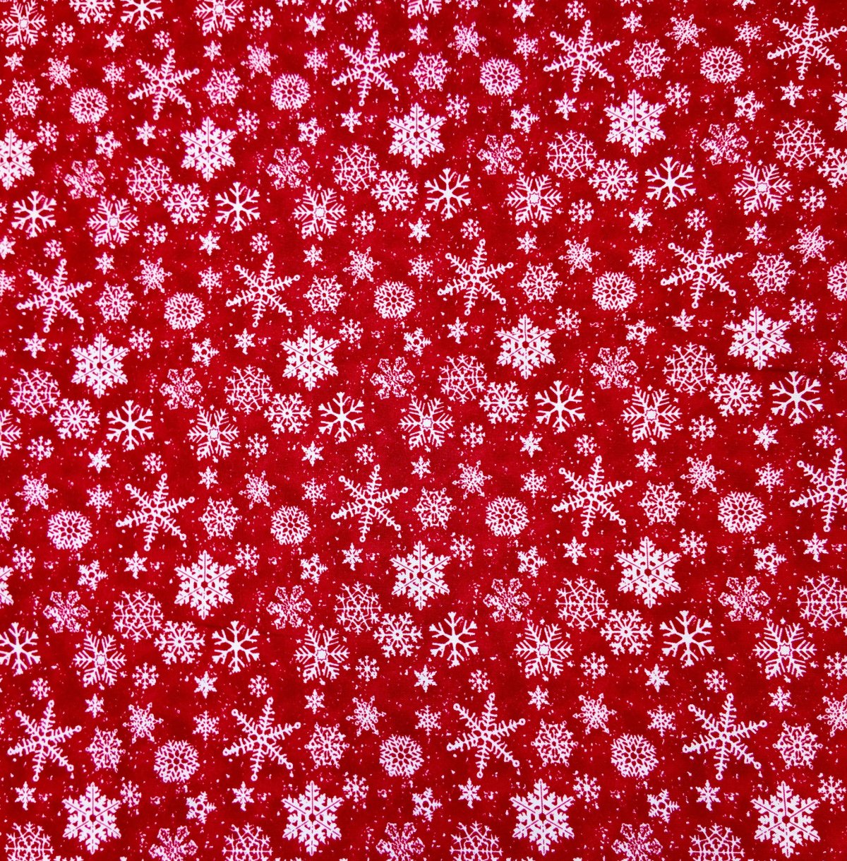 NOEL-058 – Sur un fond rouge éclatant, une pluie de flocons blancs s’éparpille en mille éclats. Ce tissu incarne la chaleur d’un Noël traditionnel, vif et lumineux.