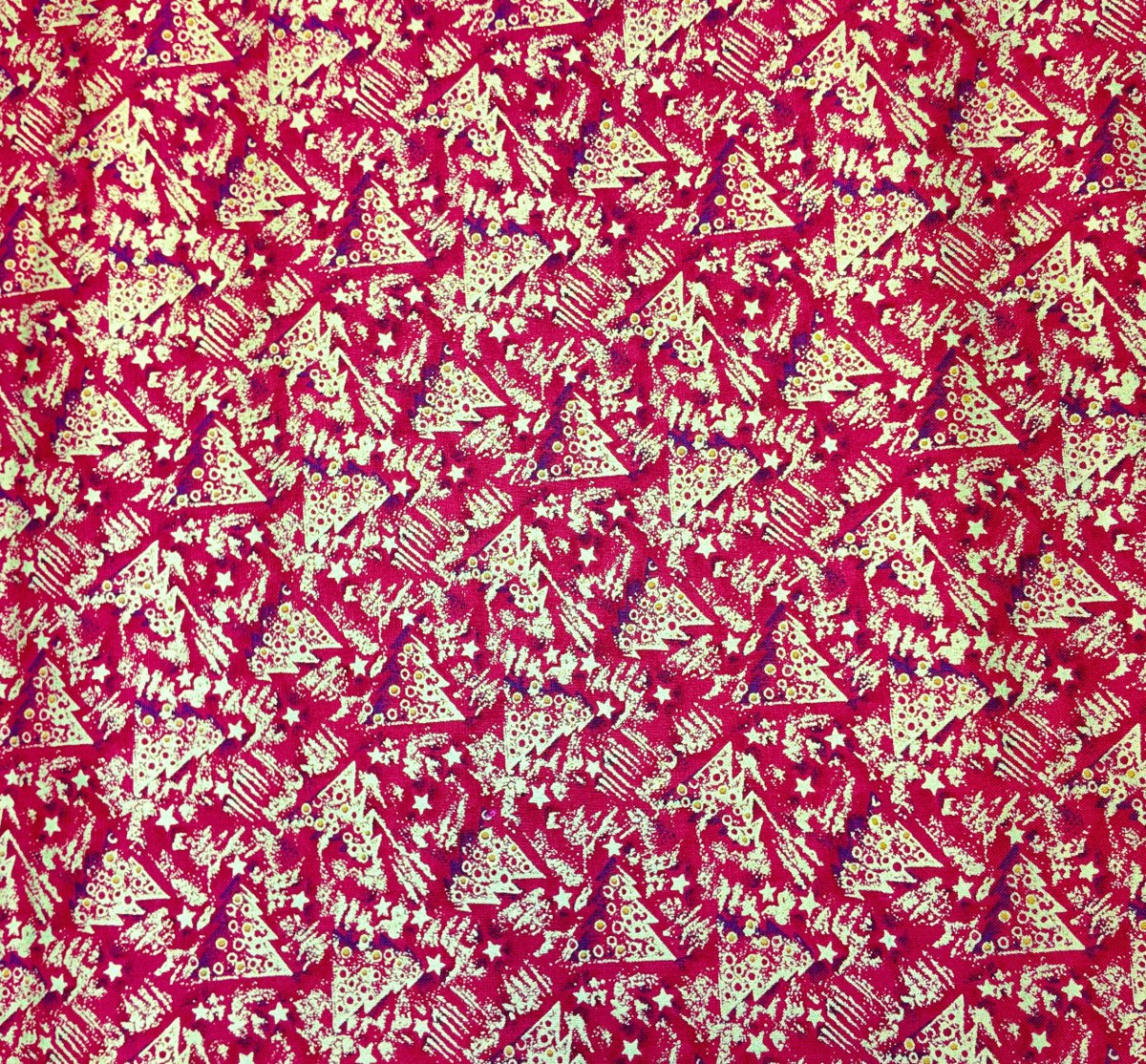 NOEL-062 – Un rouge éclatant parcouru de sapins dorés et d’étoiles scintillantes. Ce tissu incarne la joie pétillante des décorations de Noël et l’énergie des veillées festives.
