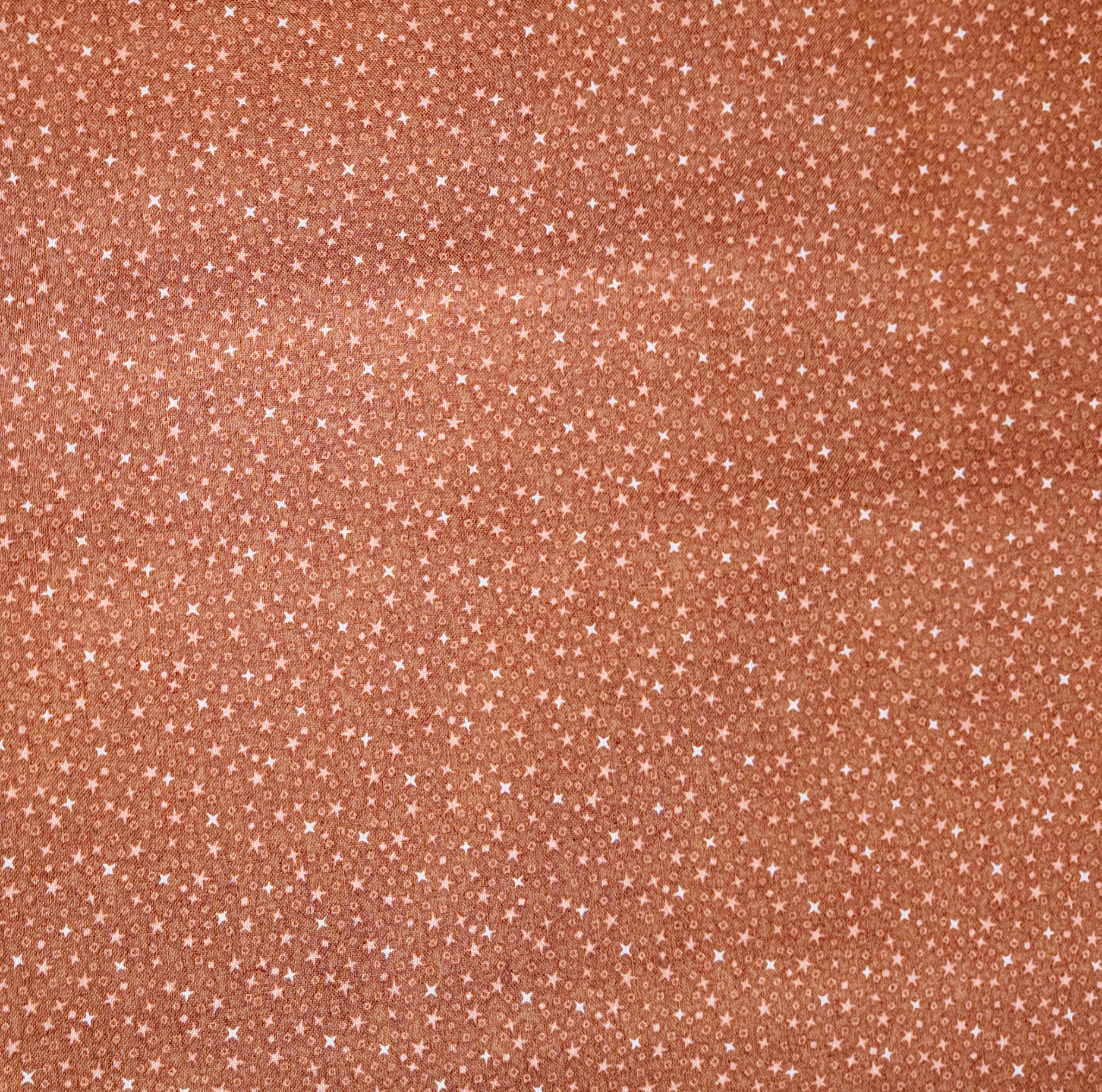 Un fond terre cuite animé d’une myriade de petites étoiles ivoire. Ce tissu respire la chaleur et la simplicité, rappelant les motifs traditionnels empreints de douceur