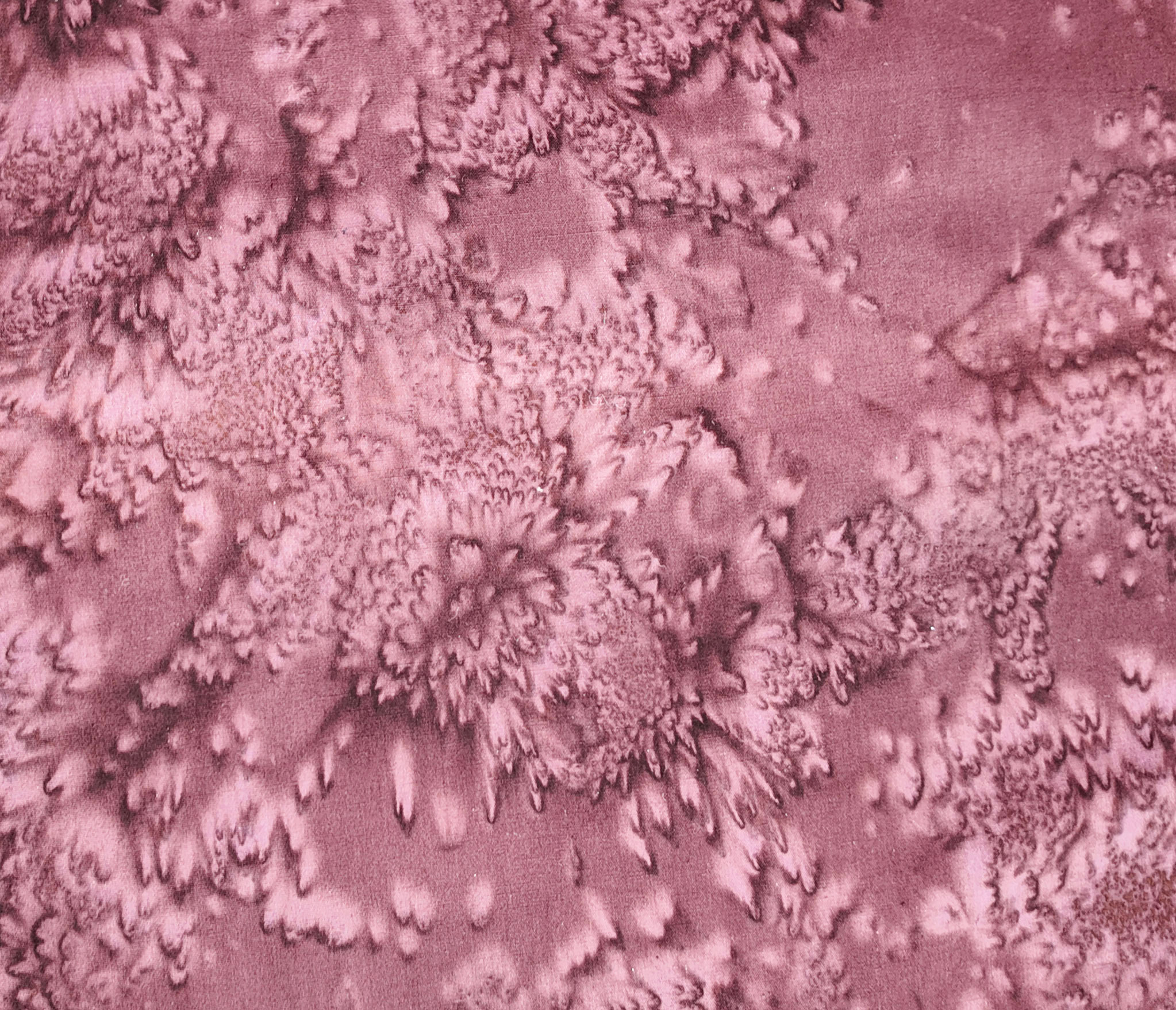 Des formes diffuses de rose ancien et de brun se fondent dans une composition douce et organique. Ce tissu évoque la surface d’un minéral poli.