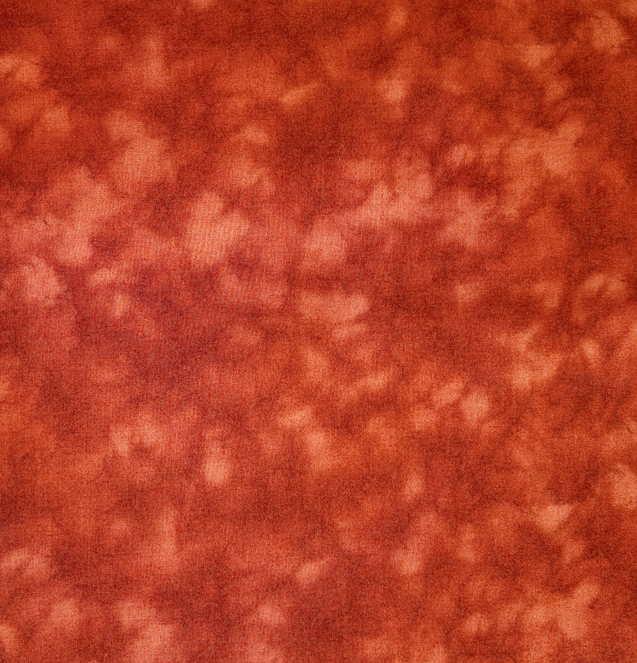 Un fond cuivre et ocre animé de nuées plus sombres crée un effet vaporeux et chaleureux. L’ensemble évoque une lumière diffuse sur une surface veloutée.