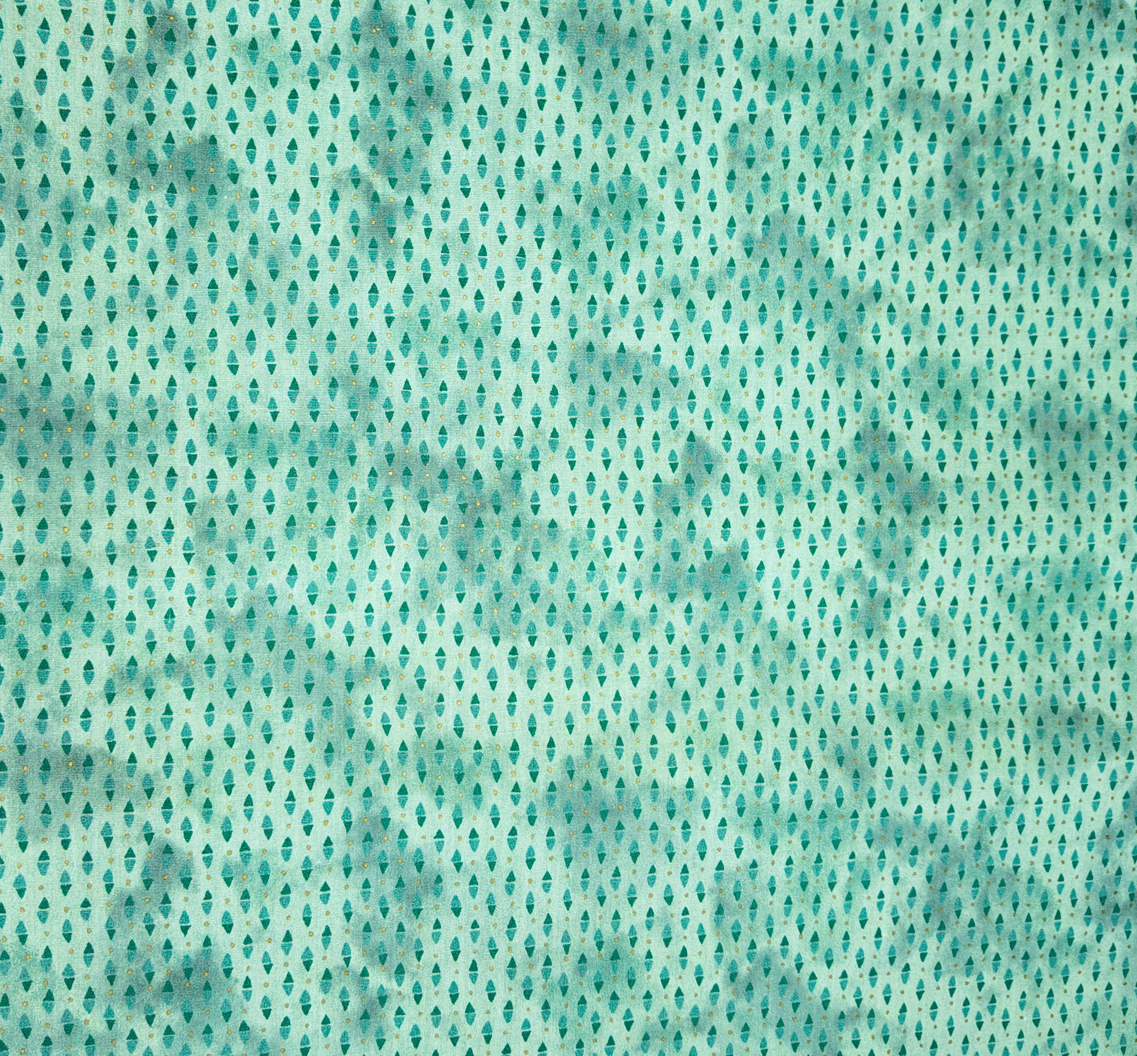 Sur un fond clair se répètent de petits losanges turquoise, légers comme des éclats de lumière sous l’eau.