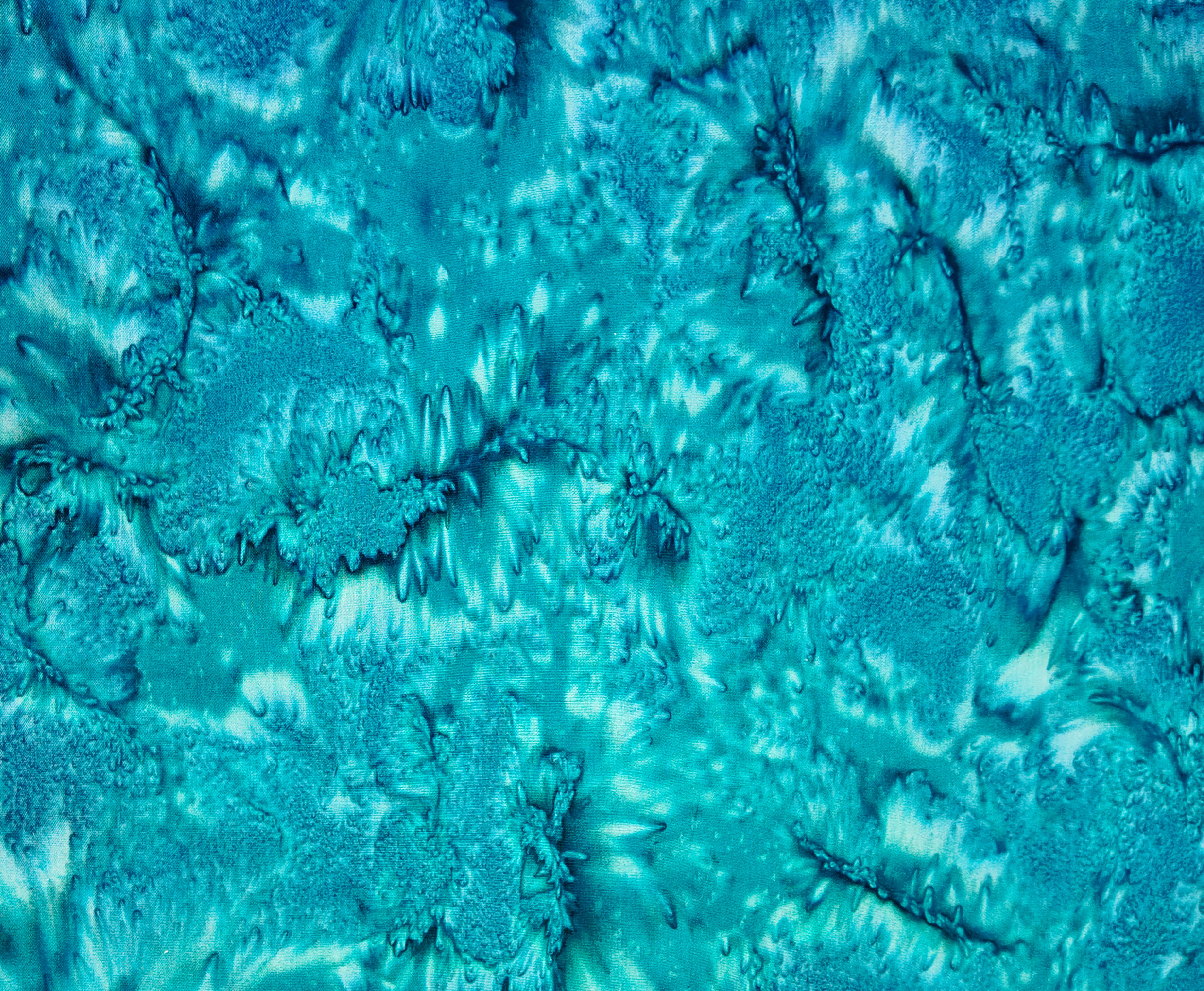 Des vagues turquoise se cristallisent en un mouvement d’eau figée, d’un éclat minéral et profond.