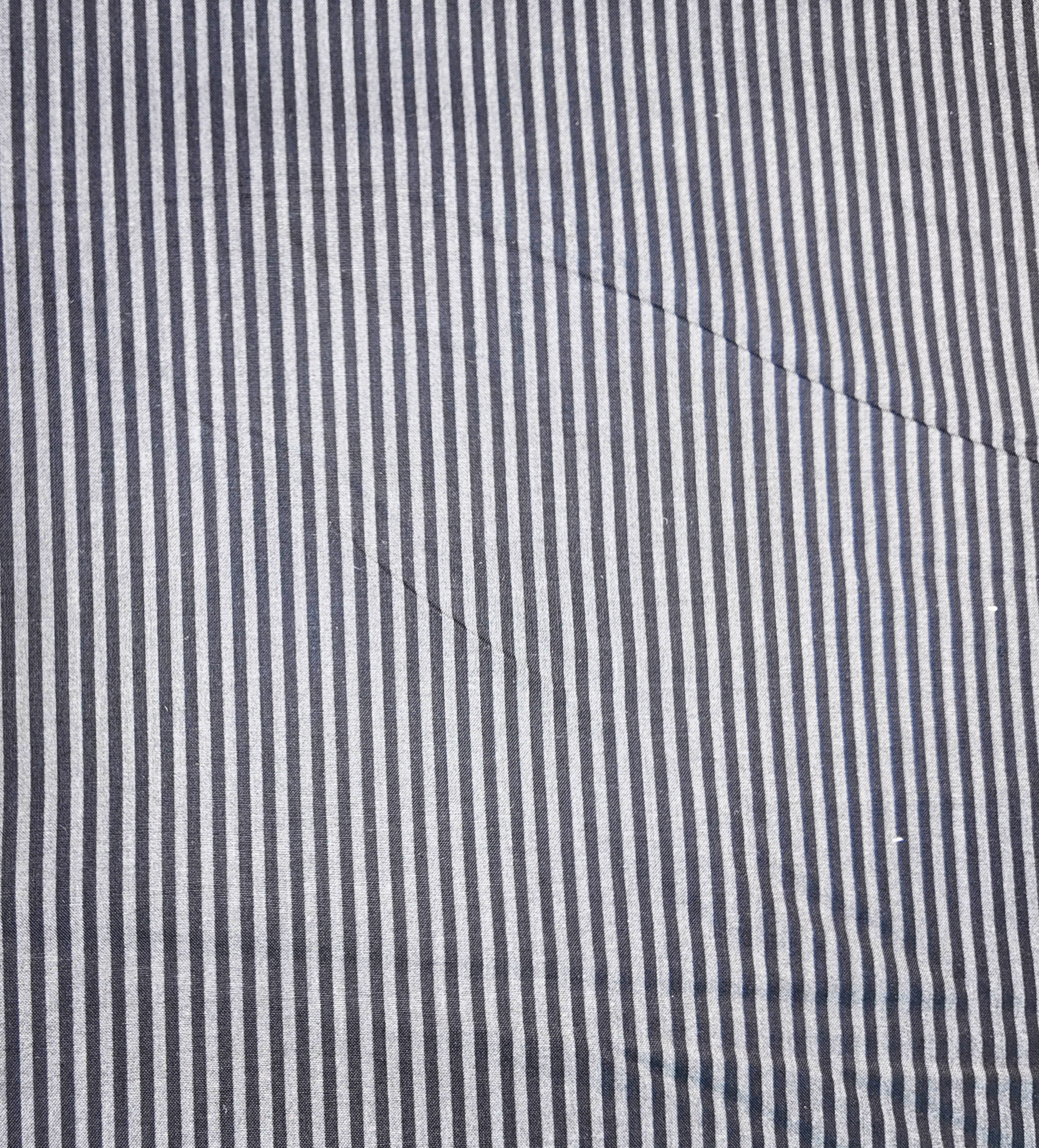Un jeu de fines bandes bleues et grises crée un effet de densité légère, rappelant les tissus classiques de chemiserie.