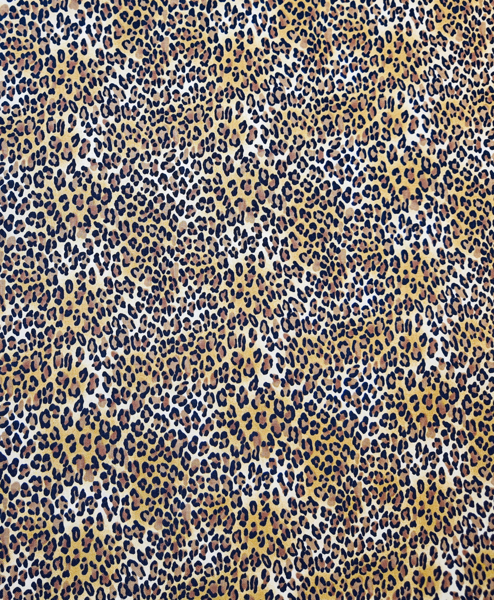 Un semis dense de taches brunes et noires se déploie sur fond ocre, rappelant la peau d’un léopard sauvage.