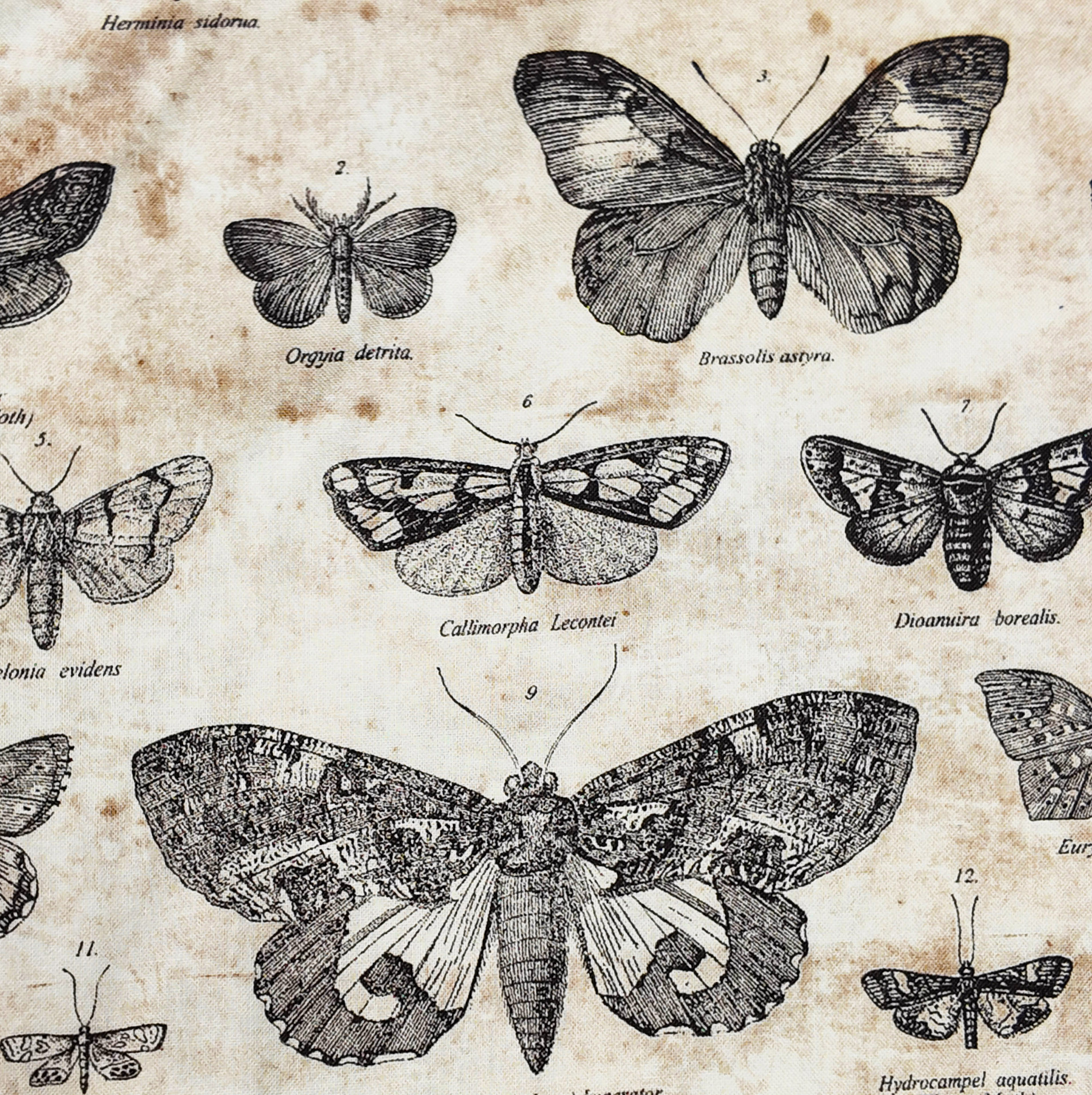 Une planche ancienne d’entomologie déploie des papillons dessinés à l’encre noire sur fond patiné de beige.