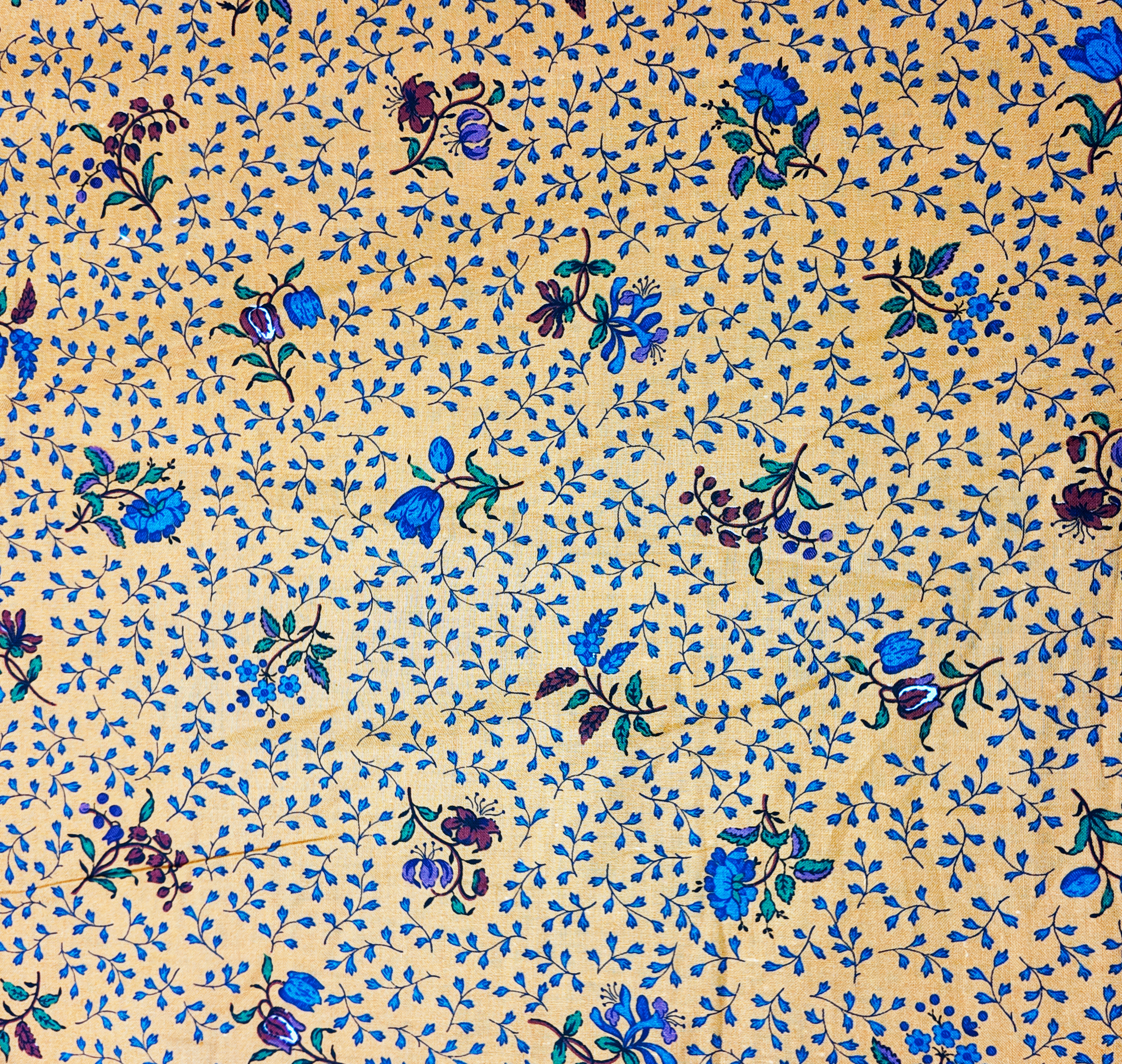 un fond miel éclatant habillé de fleurs bleues vibrantes, comme un jardin en plein soleil où chaque pétale raconte l’été.