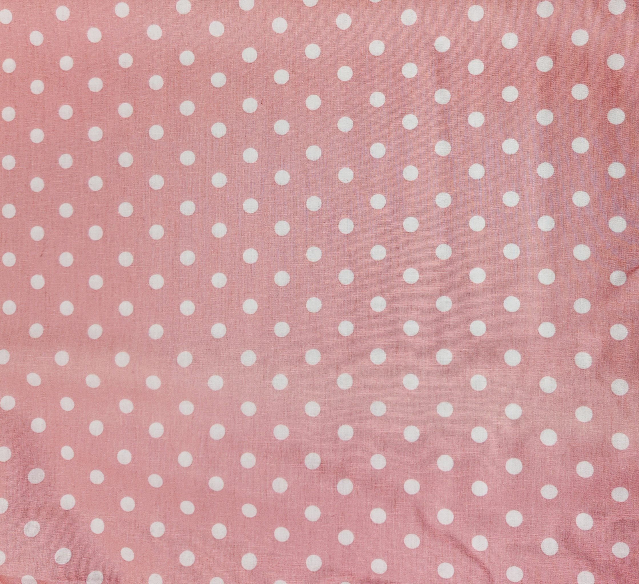 Un rose doux qui se pare de petits pois blancs, comme un murmure tendre posé sur une surface pastel, évoquant la fraîcheur simple et joyeuse d’un matin léger.