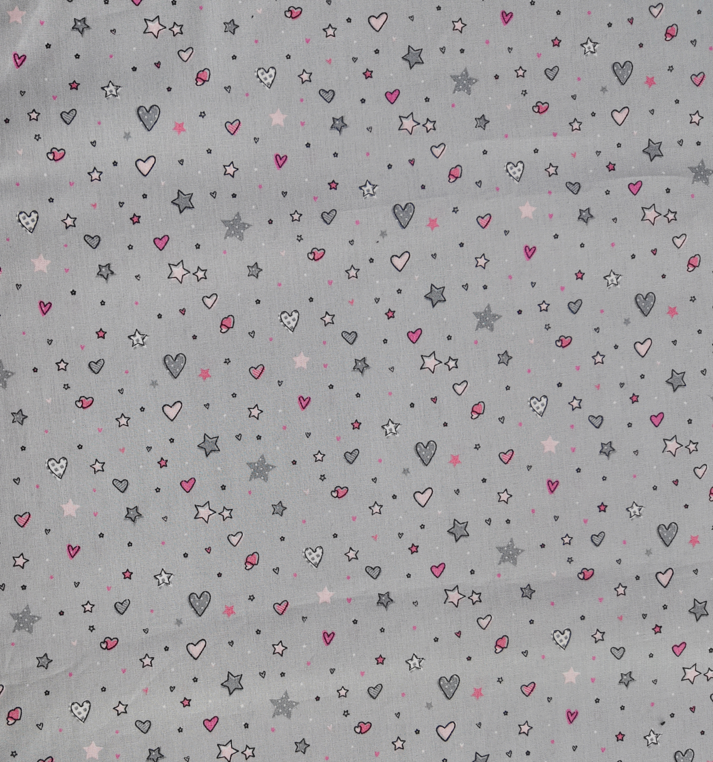 un univers tendre où cœurs et étoiles se mêlent dans un jeu léger de rose et gris, apportant une note douce et joyeuse.