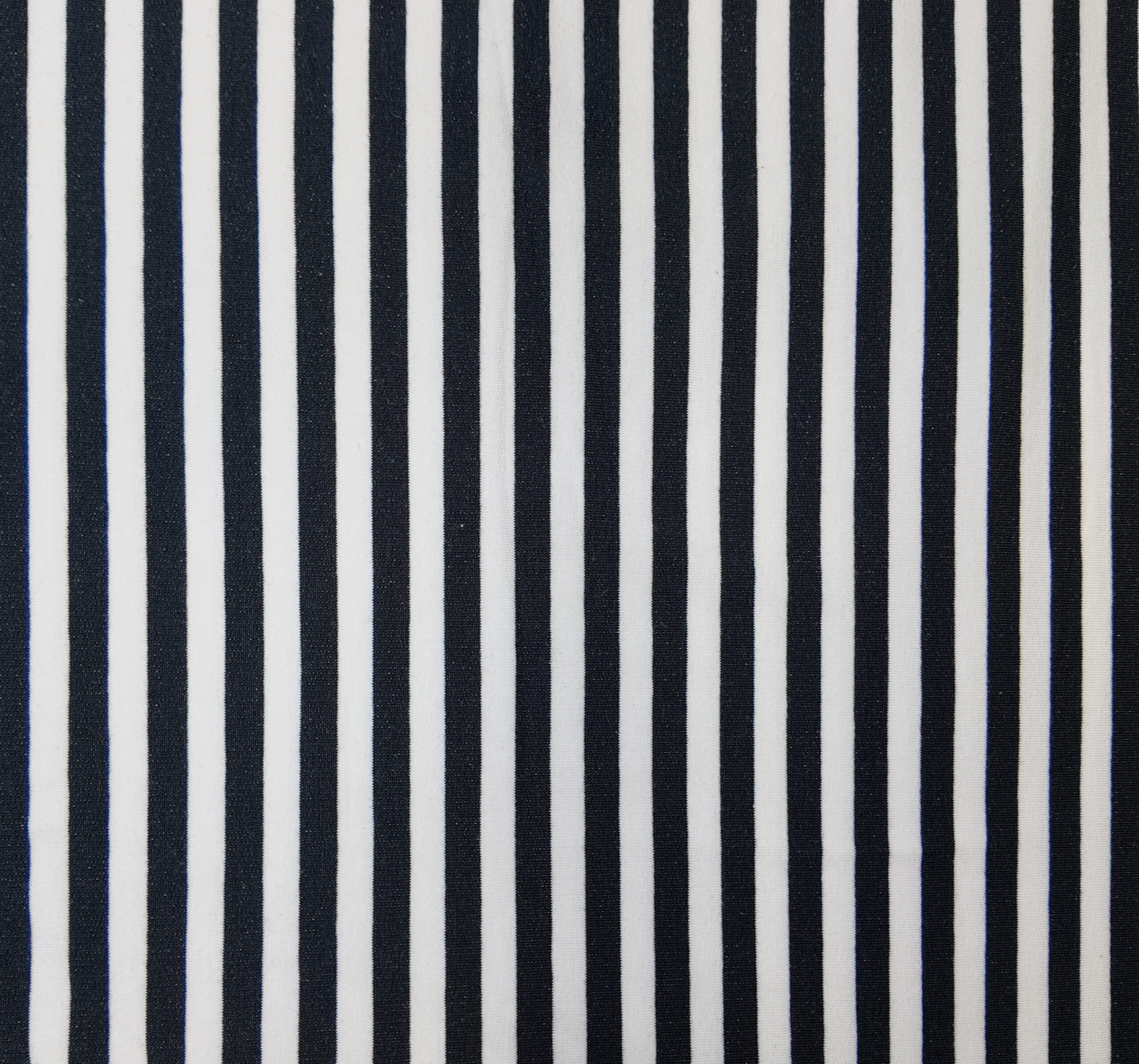 Variante plus serrée de rayures noires et blanches, une sobriété raffinée et équilibrée.