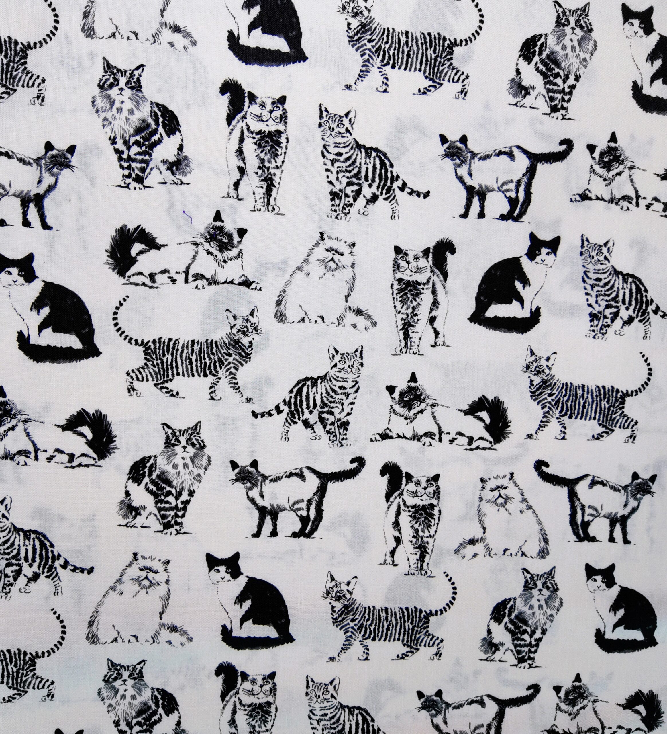 Silhouettes de chats finement dessinées en noir et blanc, dans un jeu élégant de contrastes et de textures félines.