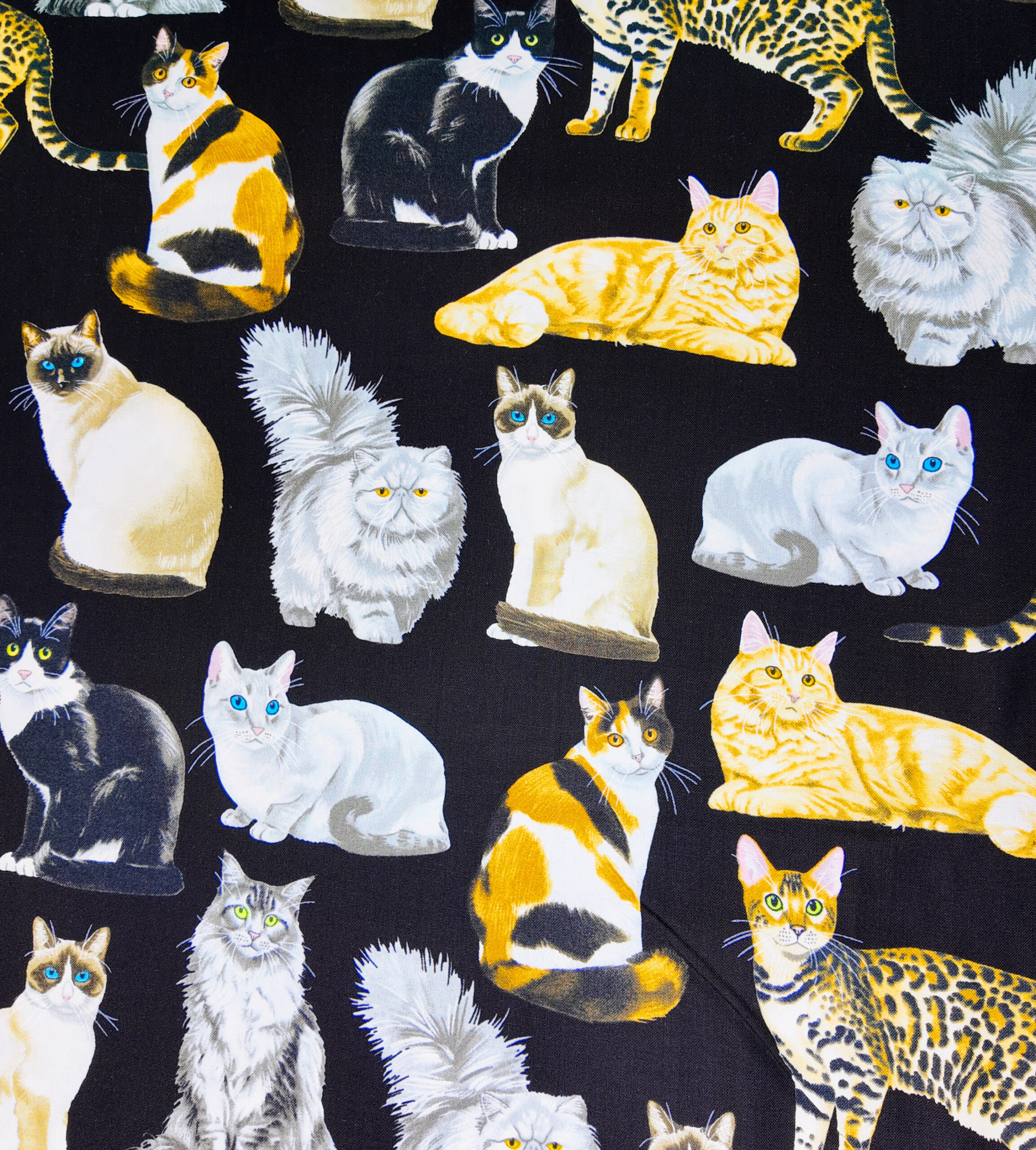 Grands portraits de chats réalistes aux pelages variés se détachant sur un fond noir, entre élégance et caractère.