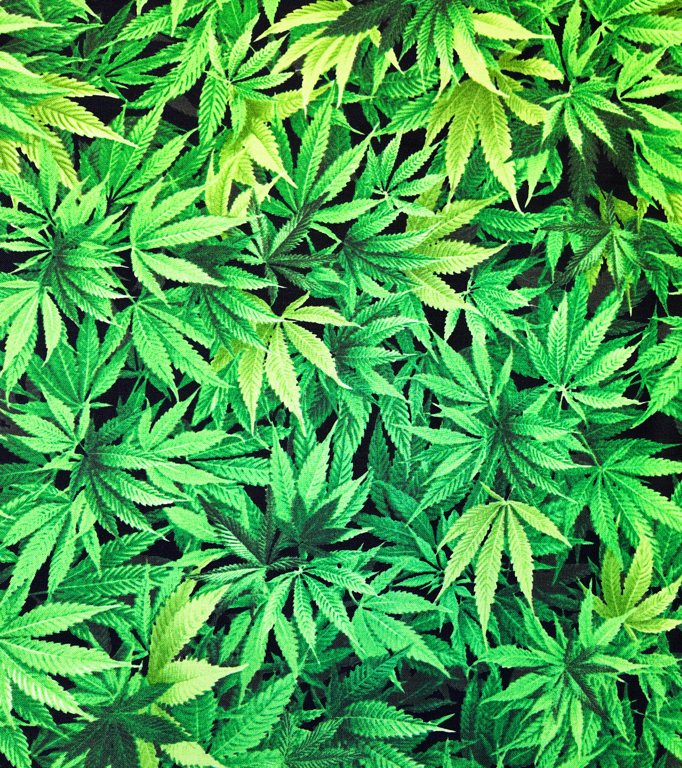 Un feuillage vert éclatant s’étend en une canopée luxuriante, chaque feuille capturant la lumière comme dans une jungle tropicale. Le tissu rayonne d’énergie végétale.
