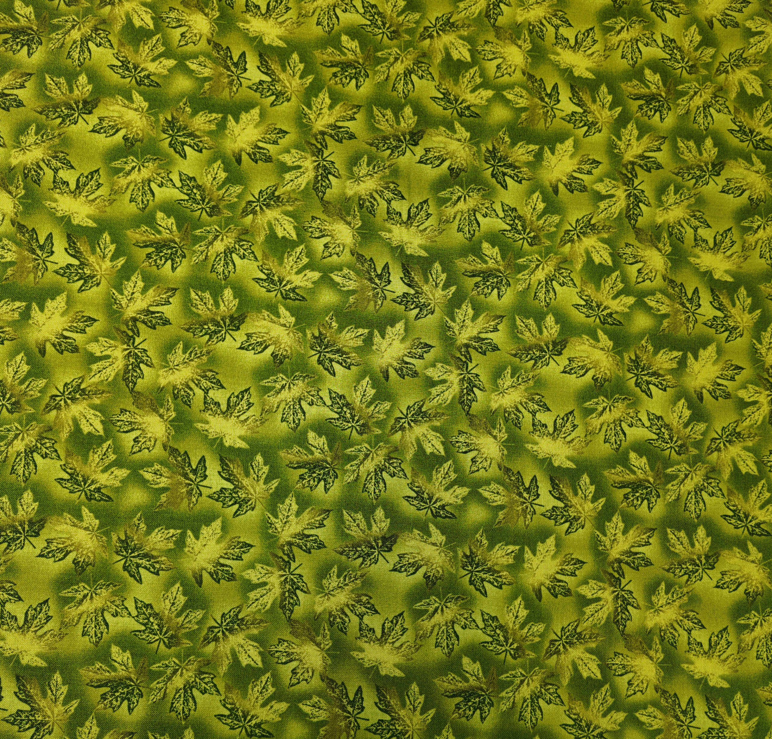 Feuilles d’érable et nuances vertes se mêlent dans une danse de lumière. Le tissu évoque la fraîcheur d’un matin de printemps.