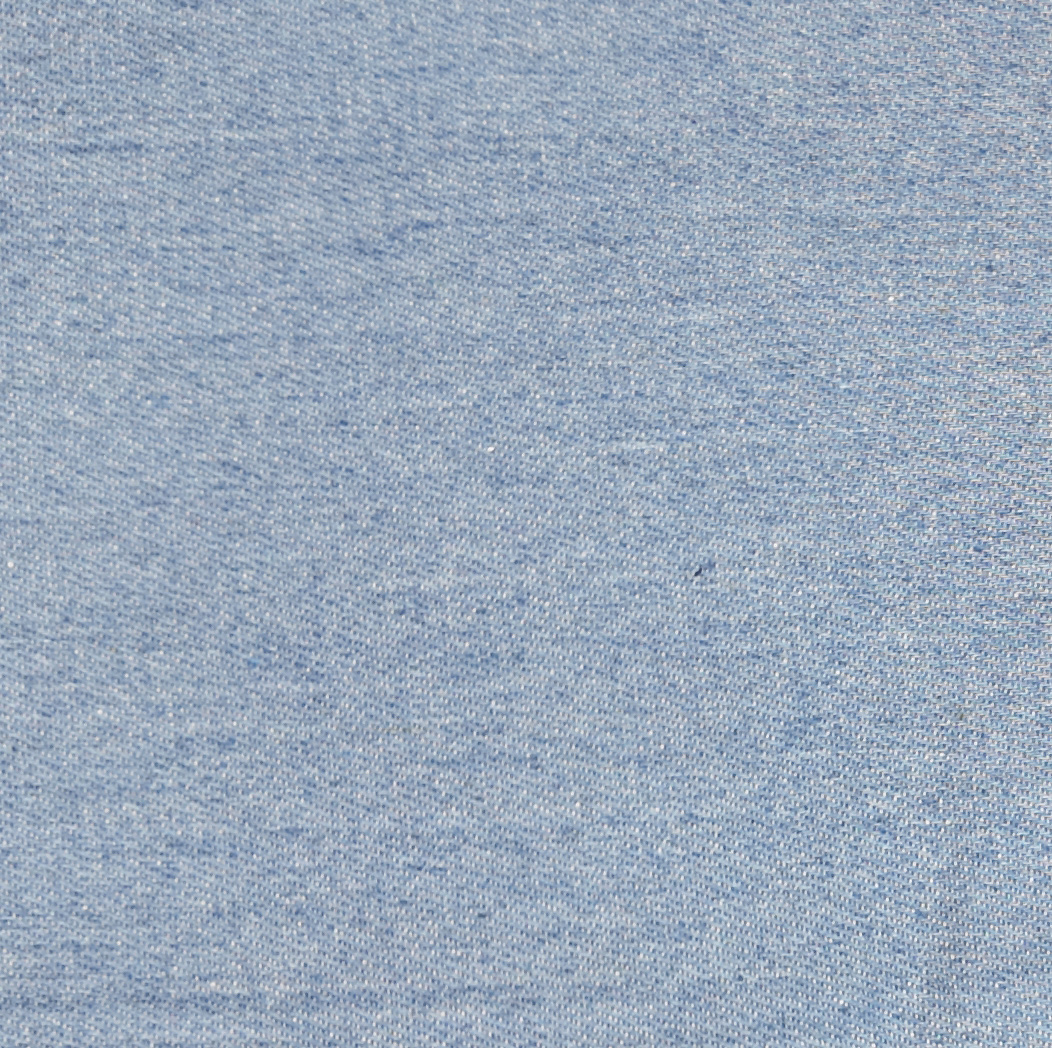 Denim bleu clair légèrement chiné, à la texture douce et régulière. Il inspire la simplicité et la pureté, idéal pour des pièces estivales et naturelles.