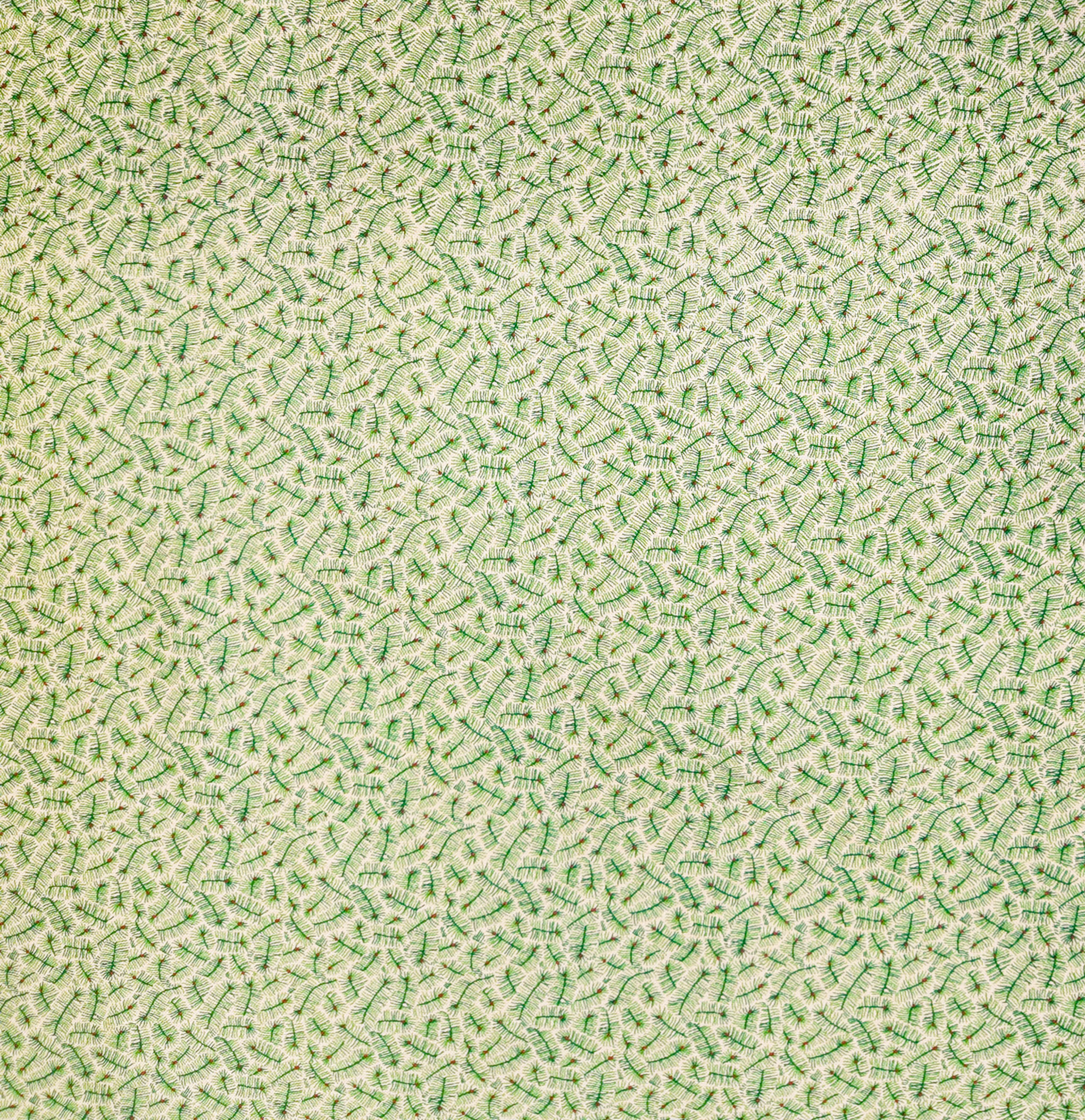 Feuillage finement dessiné en vert tendre, comme un tapis de mousse éclatant sous la lumière. L’ensemble évoque un souffle végétal printanier et paisible.