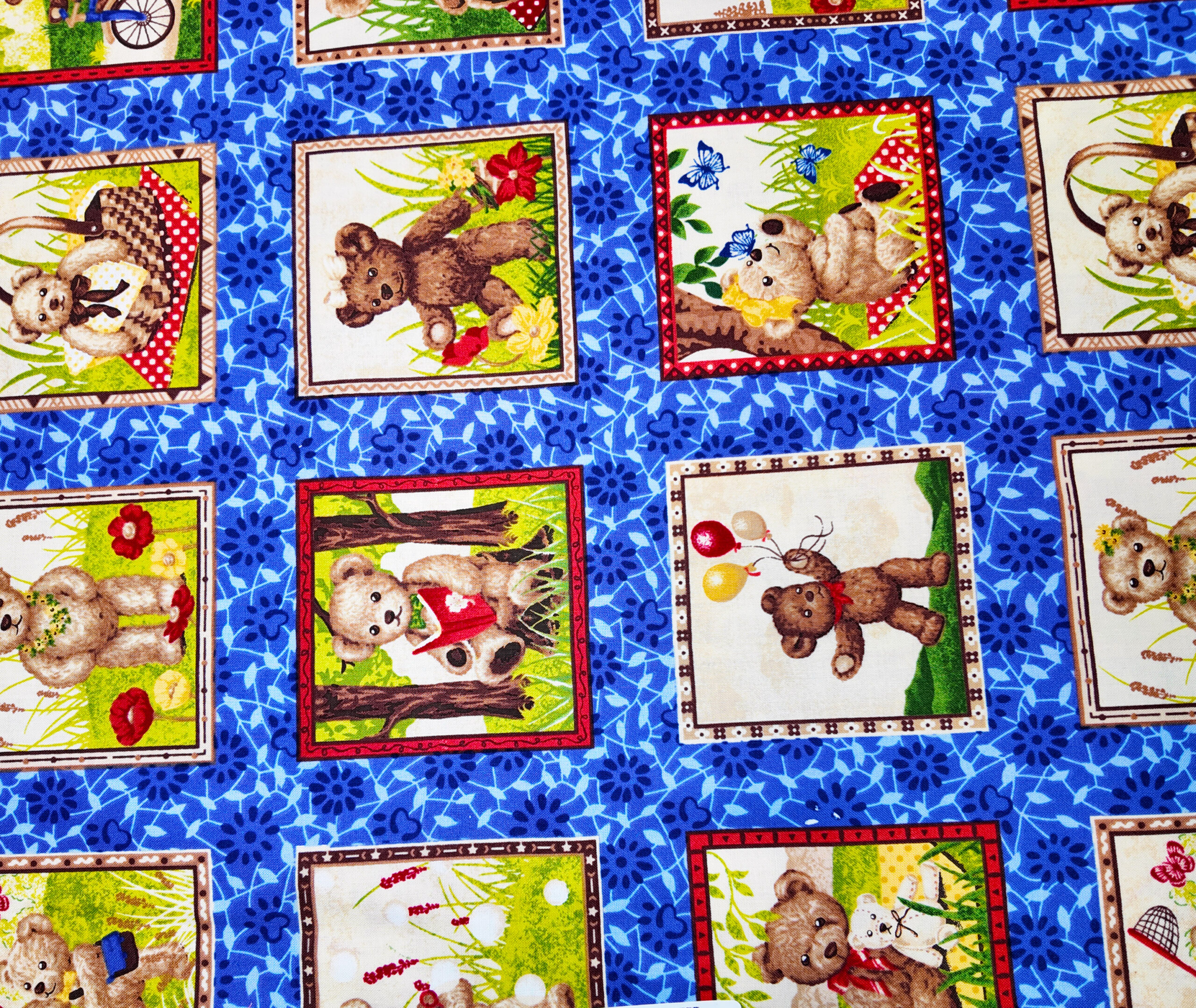ours en balade parmi des frises fleuries et colorées, une scène champêtre douce et pleine de vie.