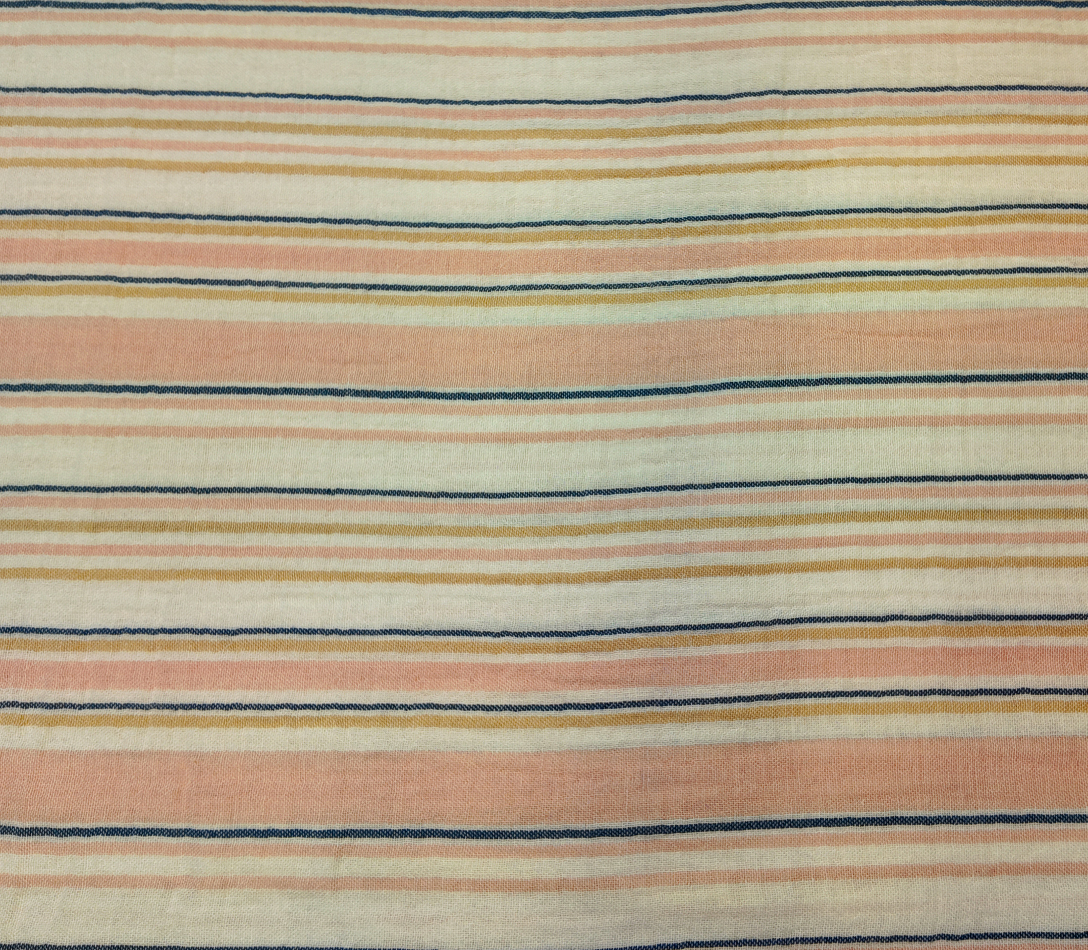 Tissu rayé pêche, beige et bleu nuit, doux et apaisant, inspiré des plages au soleil couchant.