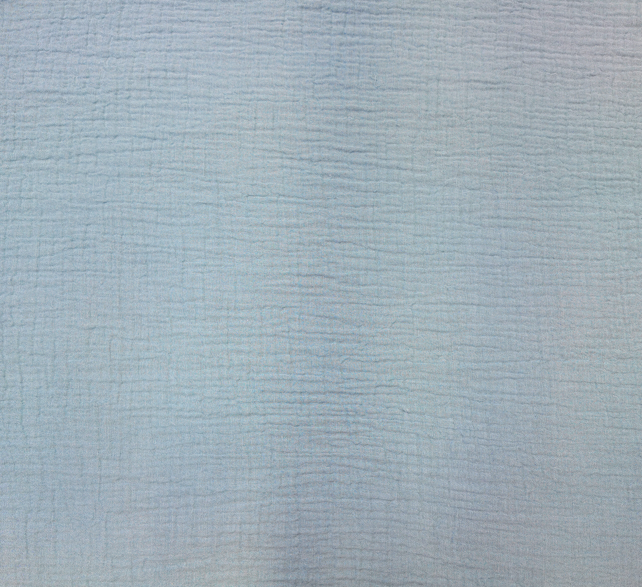 Tissu double gaze bleu pastel, doux et aérien, évoquant les brumes légères et la tendresse des étoffes pour enfants.