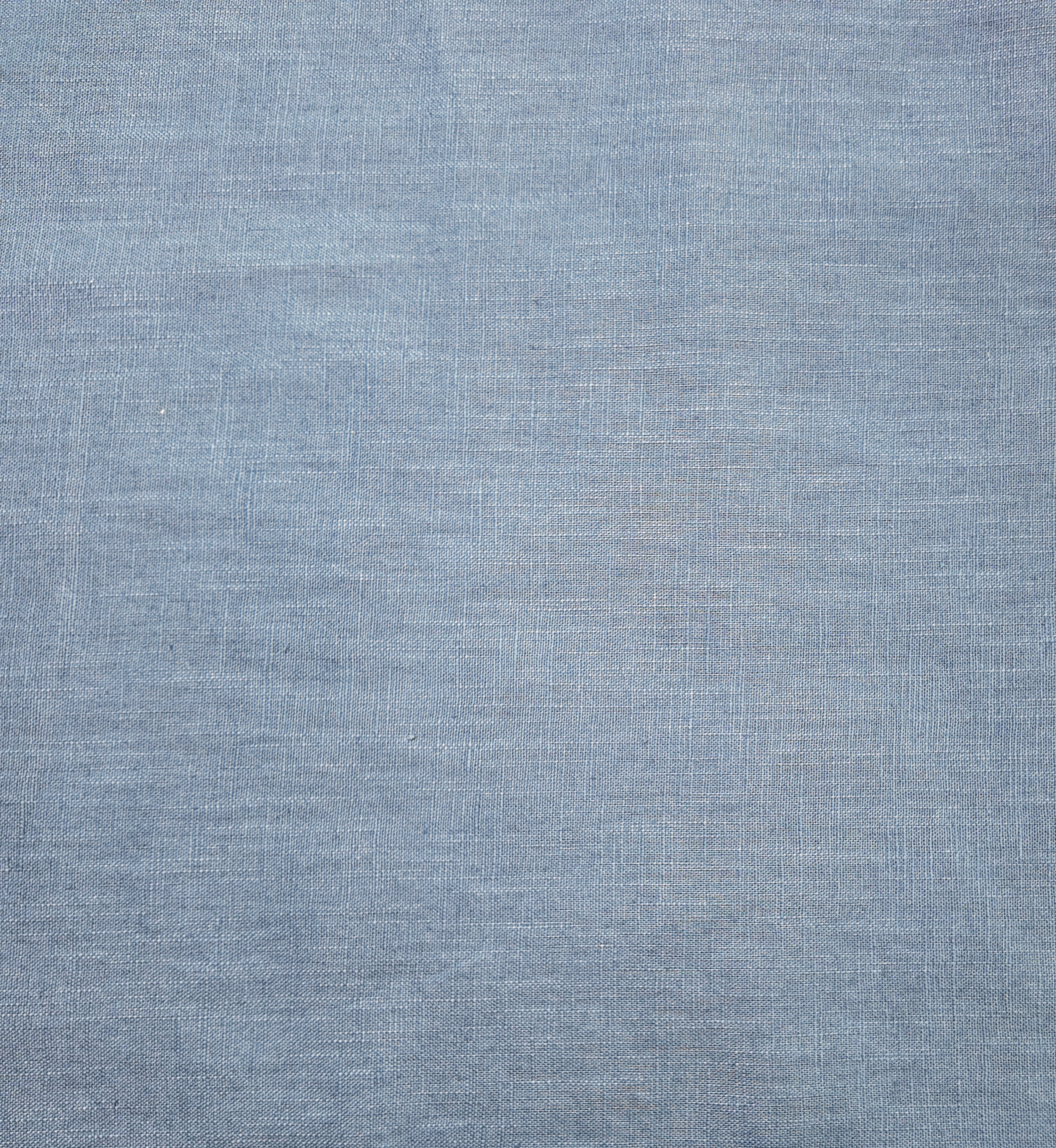 une nuance douce de bleu grisé, calme et diffuse, parcourue de fils fins qui se croisent dans une texture naturellement légère. Une impression de fraîcheur et de simplicité se dépose, comme un souffle posé sur la toile.Tissus en lin
