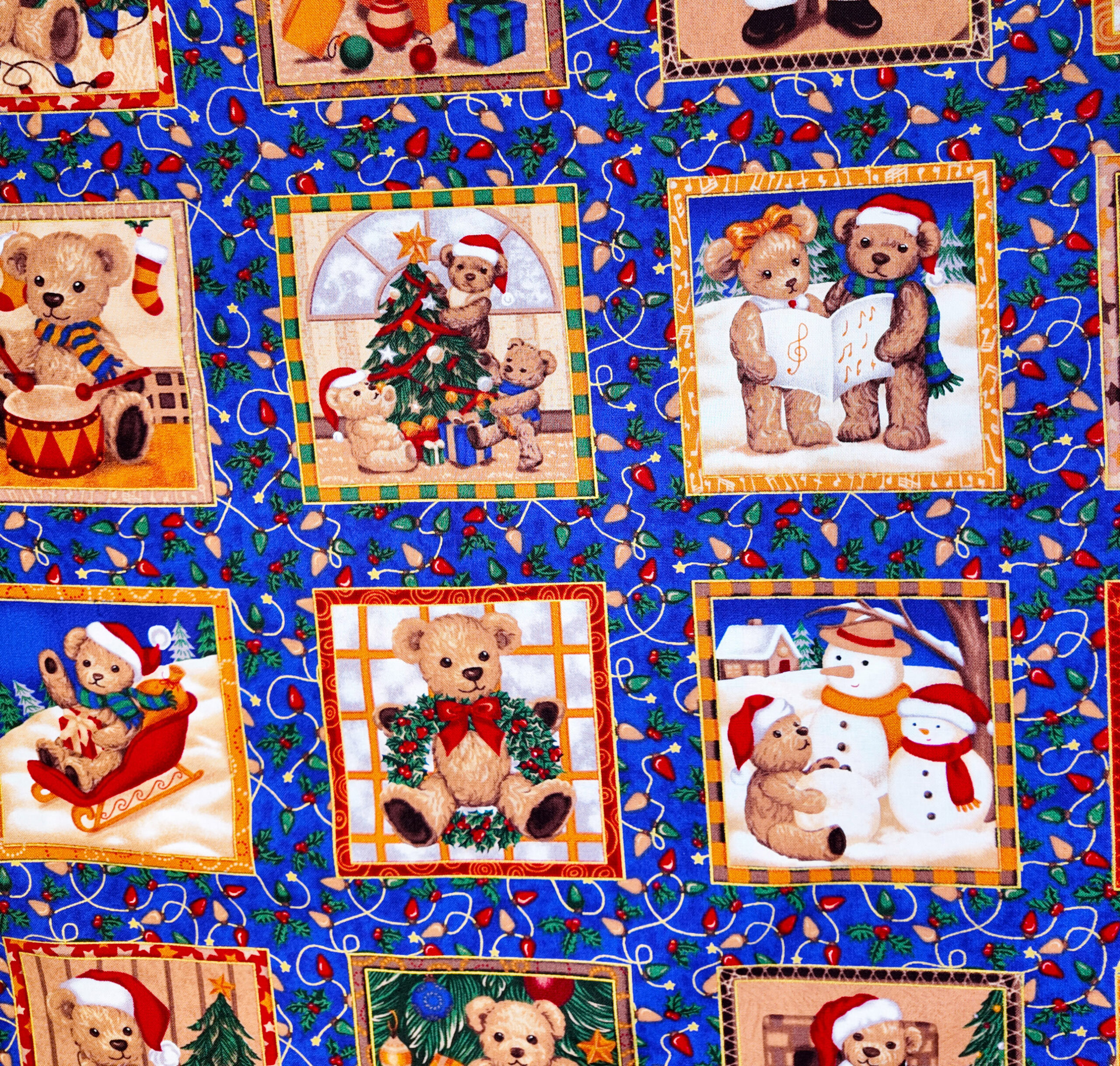 Des oursons tendres et joyeux s’affichent dans de petites scènes de fête : sapins, cadeaux et bonnets rouges. Un univers chaleureux et enfantin qui évoque la douceur de Noël.