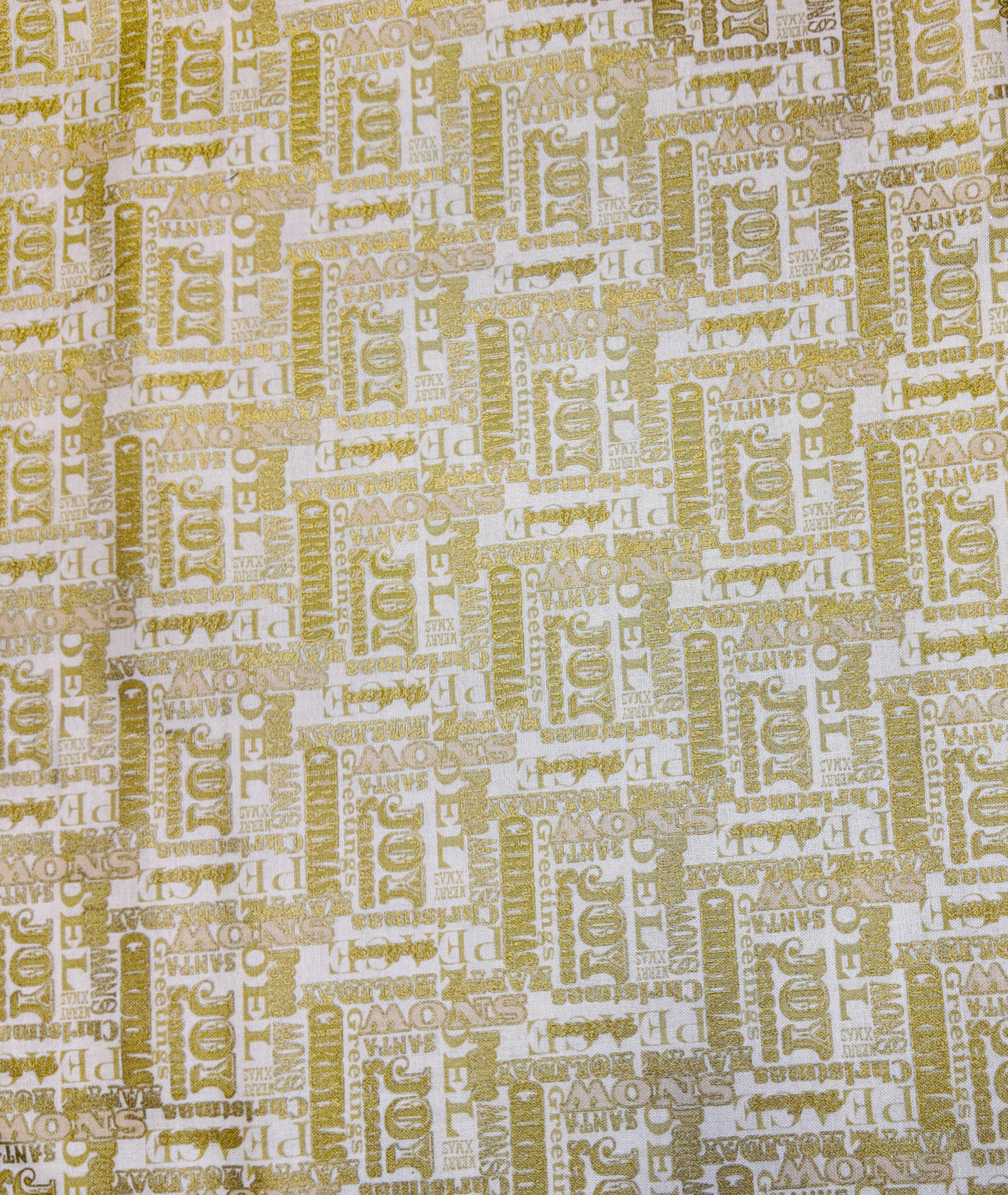 Des mots dorés s’entrelacent sur un fond blanc, formant un hymne visuel à la joie et aux vœux de Noël. Un tissu lumineux, festif et élégant.