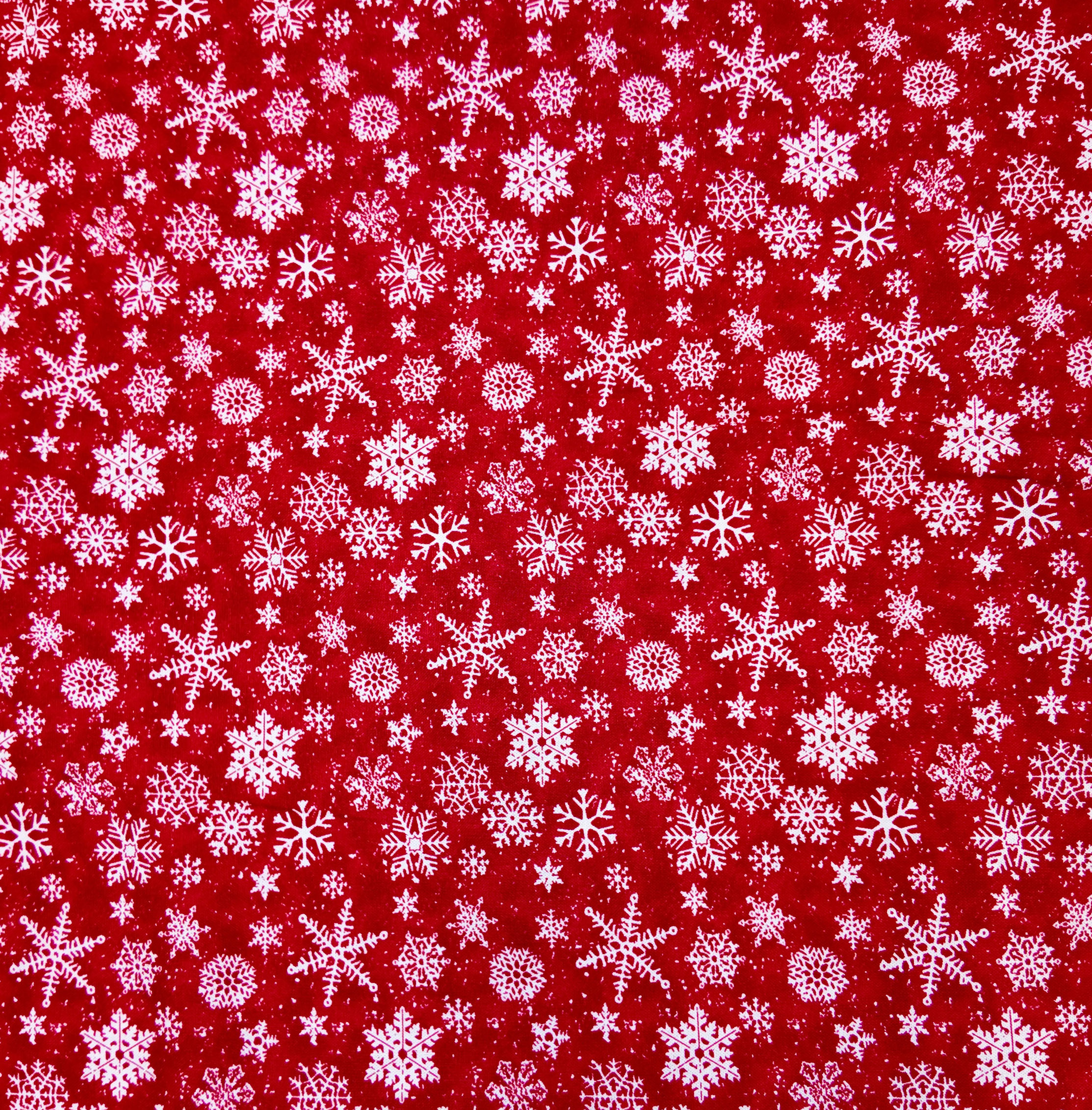 Sur un fond rouge éclatant, une pluie de flocons blancs s’éparpille en mille éclats. Ce tissu incarne la chaleur d’un Noël traditionnel, vif et lumineux.