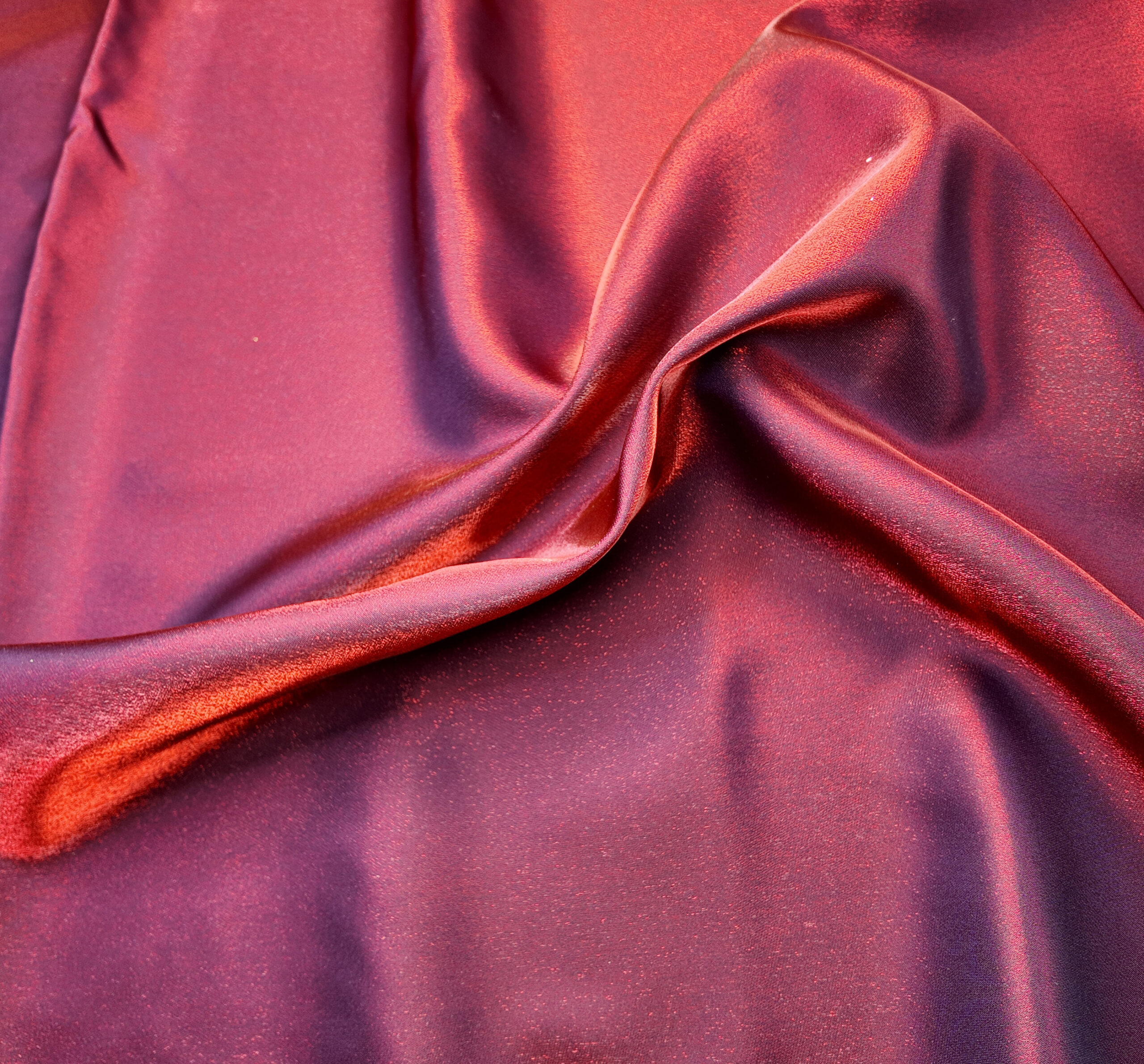 un jeu hypnotique de reflets violets et rouges, glissant comme une lumière changeante sur une surface fluide