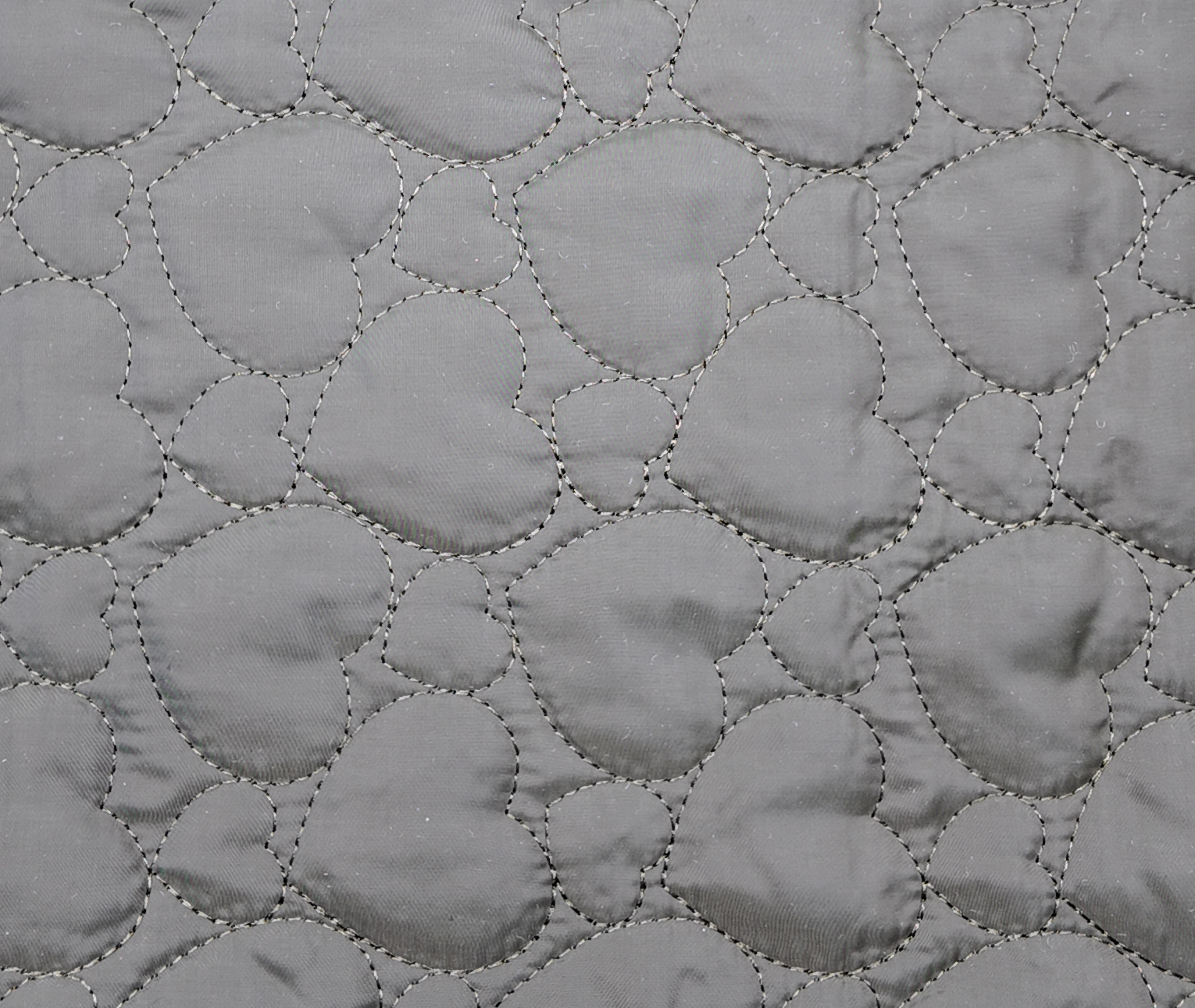 tissu matelassé gris moyen à cœurs délicatement dessinés. Son aspect doux et mat en fait un choix charmant pour les doublures pleines de douceur et d’élégance.