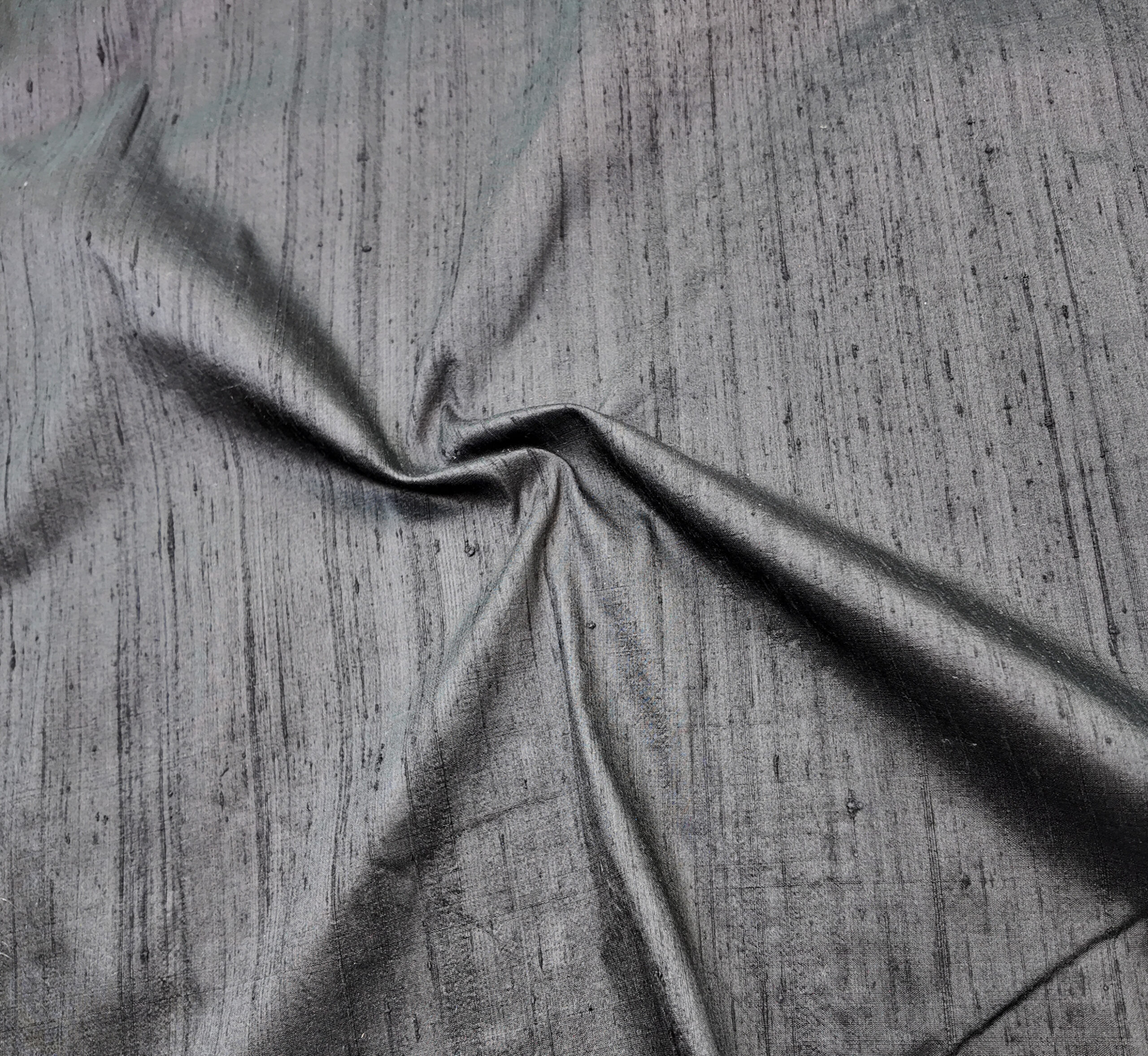 un gris profond aux reflets fumés, traversé de fines stries naturelles qui donnent du relief à la surface. une lumière douce glisse sur la matière et révèle un éclat discret, presque métallisé.
